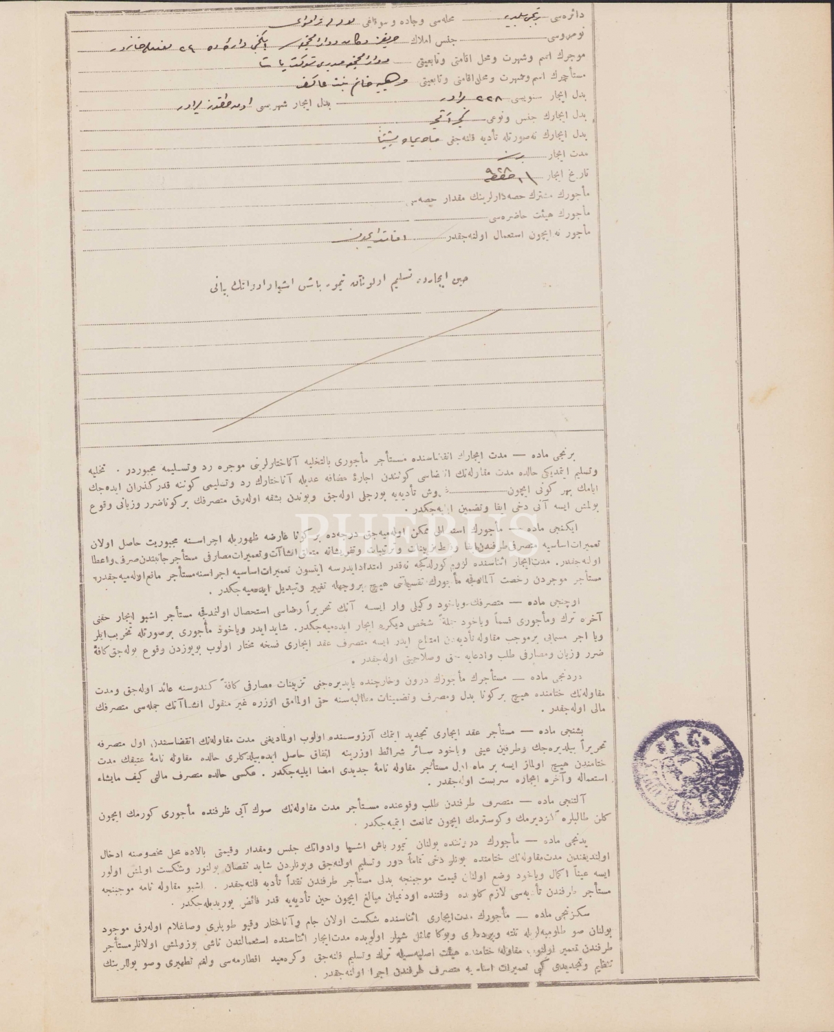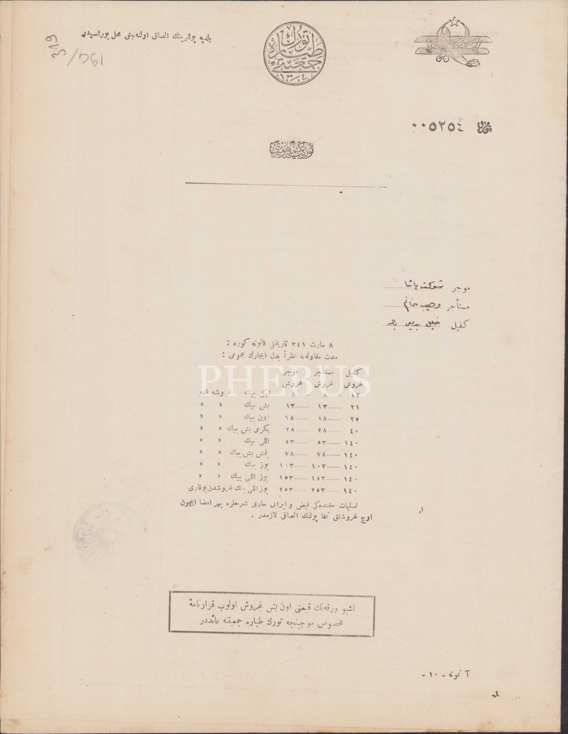 Türk Tayyare Cemiyeti antetli, 1928 tarihli icar mukavelenamesi belgesi, damgalı ve pullu, 4 sayfa, 24x31 cm.