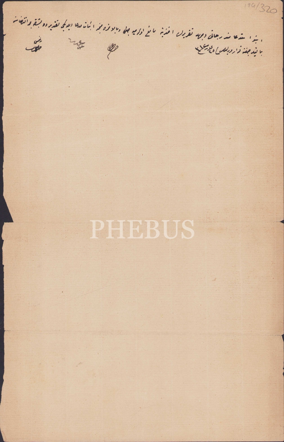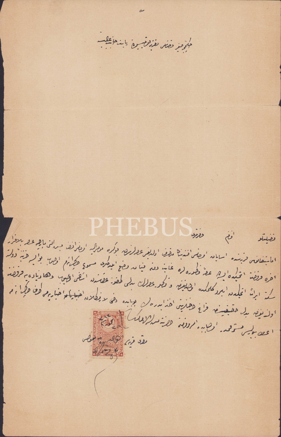 Çekmece-i Sagir Kazası [Küçükçekmece] komisyon riyasetine yazılmış Osmanlıca belge, pullu, haliyle, 20x32 cm.