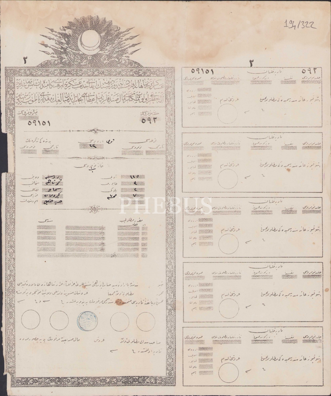 Asakir-i Berriye-i Şahane ve Redif Mal Sandığı Senedi, Osmanlıca, arkalı önlü, 28x34 cm.
