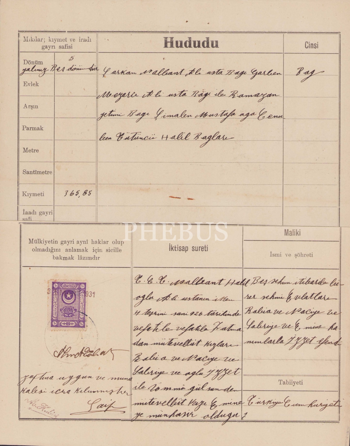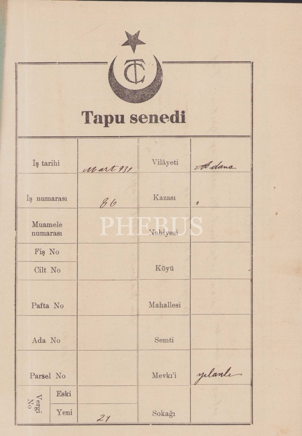 Mart 1931 tarihli Tapu Senedi, Adana, 8 sayfa, 17x23 cm.
