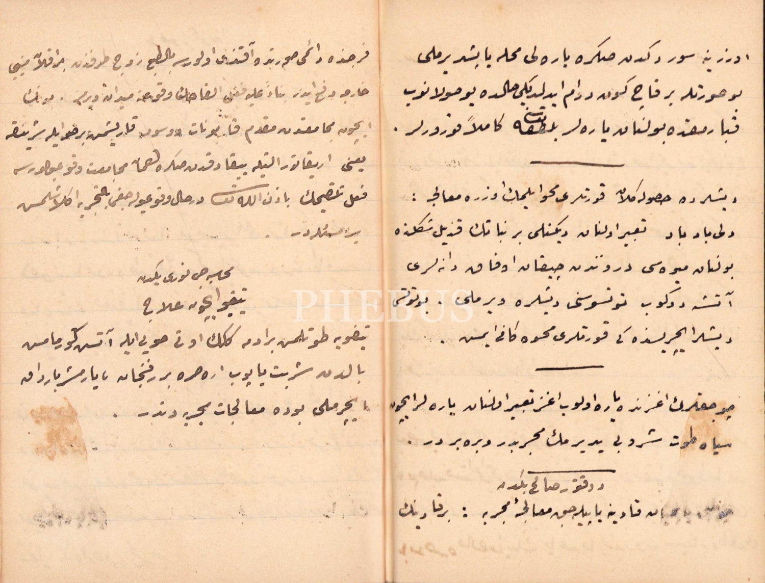 Muhtelif ilaç tariflerinin yazılı olduğu mecmua, 'Mekatib-i Umumiye Talebesine Mahsus' yazılı cildinde, 14 varak yazılı, 10x15,5 cm
