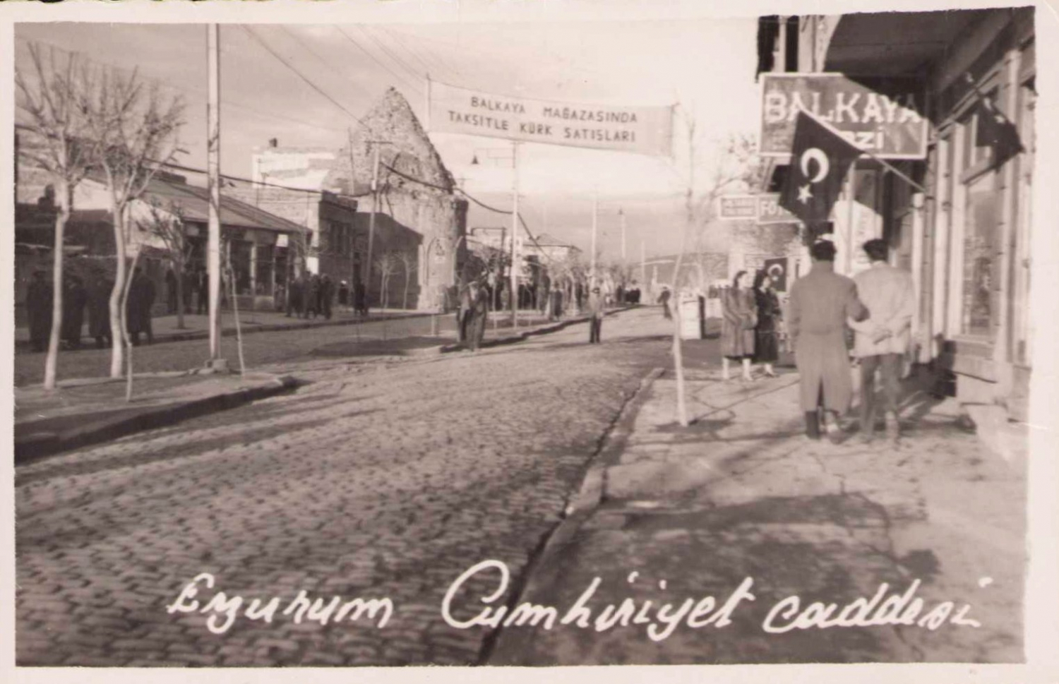 Erzurum Cumhuriyet caddesi, Balkaya terzi tabelalı, türk bayrağı detaylı fotoğraf