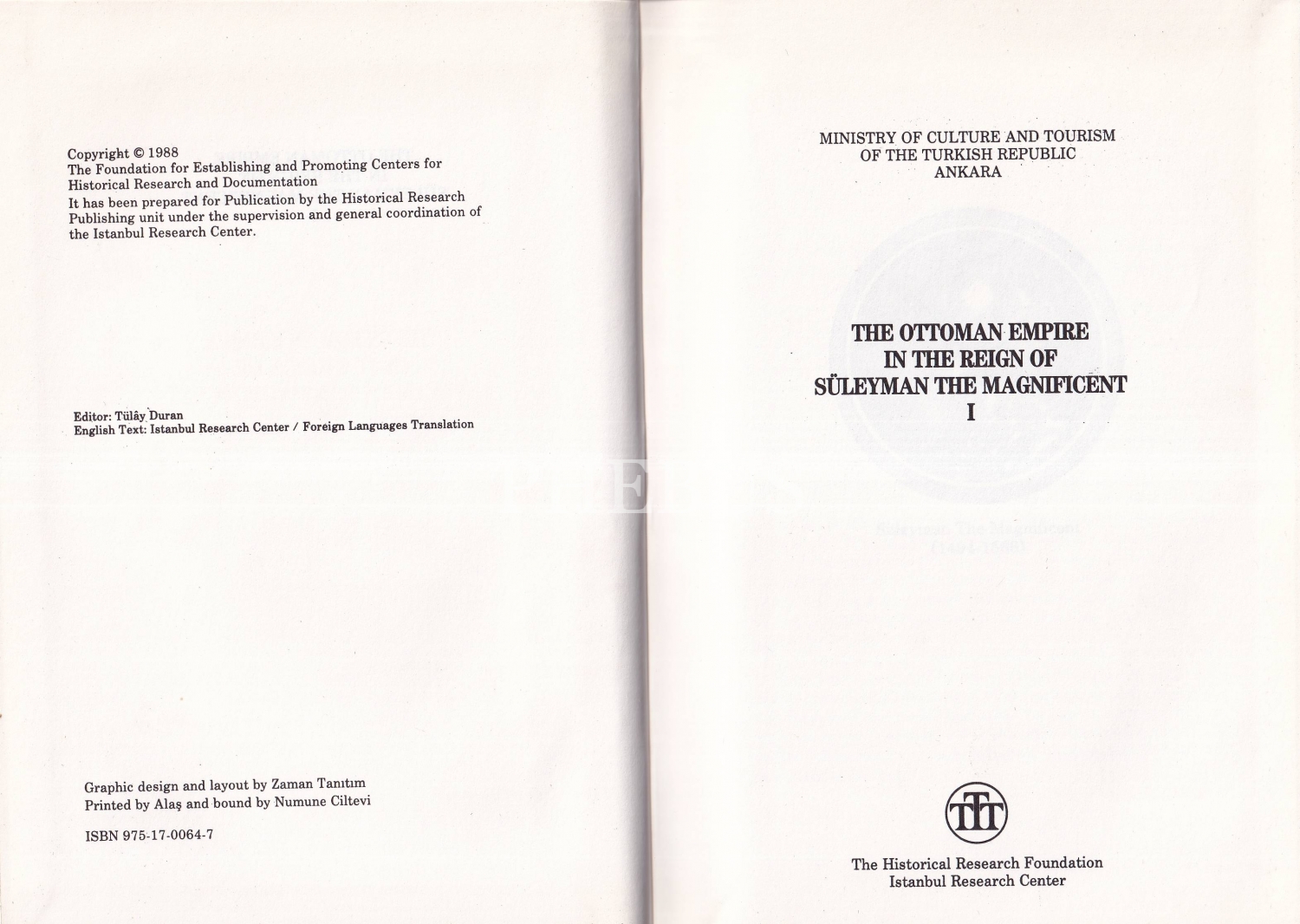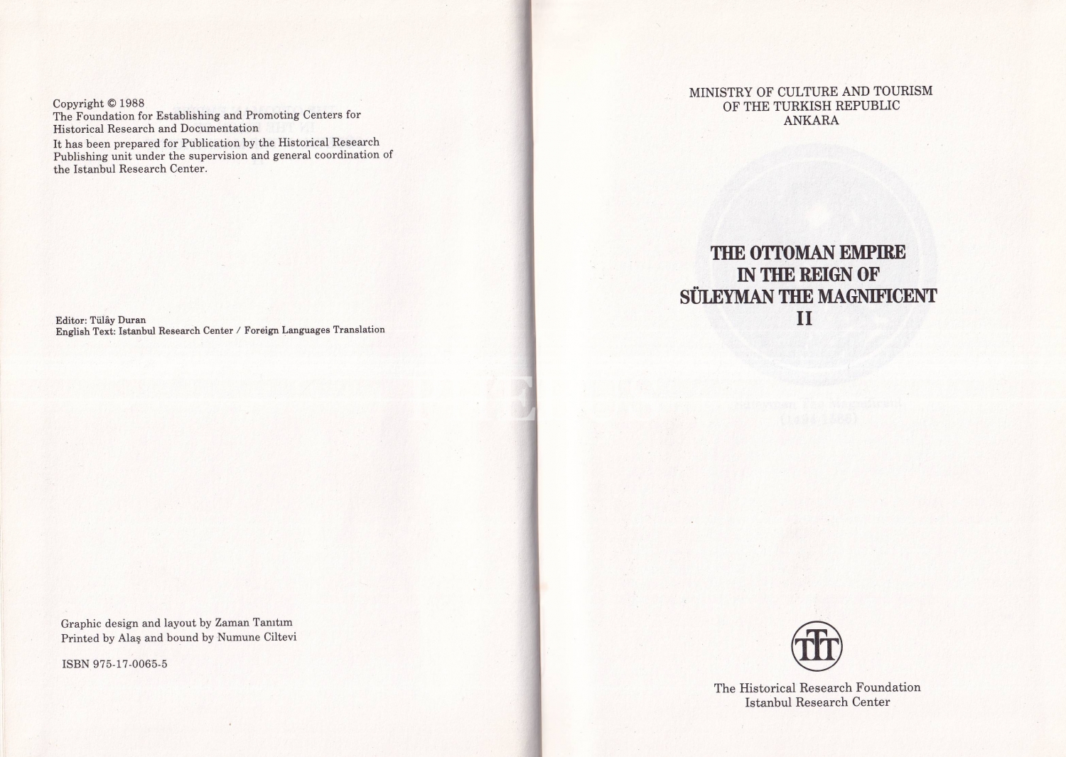 The Ottoman Empire In The Reign Of Süleyman The Magnificent I - II, The Historical Research Foundation İstanbul Research Center, 1988, 196 + 238 sayfa, 14x20 cm