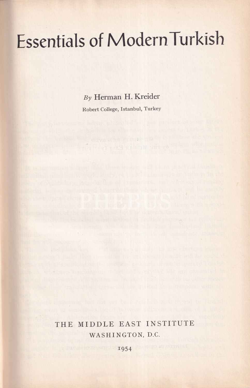 Essentials Of Modern Turkish, Herman H. Kreider, The Middle East Institute, Washington, D.C., 1954, 326 sayfa, 15x23 cm