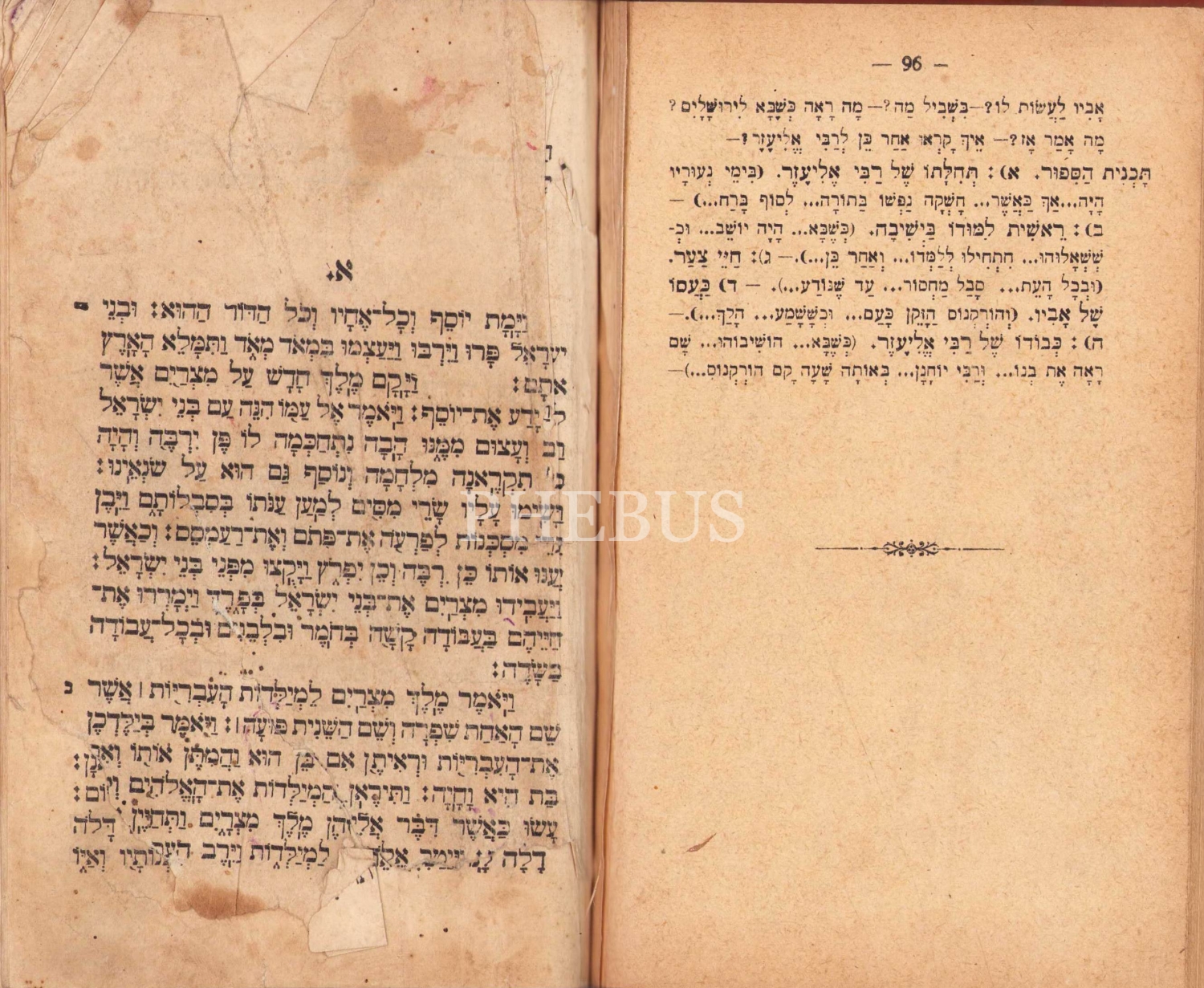 İbranice kitap, içinde iki farklı kitap var, biri tam kitap diğeri yarım, cilt haliyle, 96 sayfa, 13x19 cm
