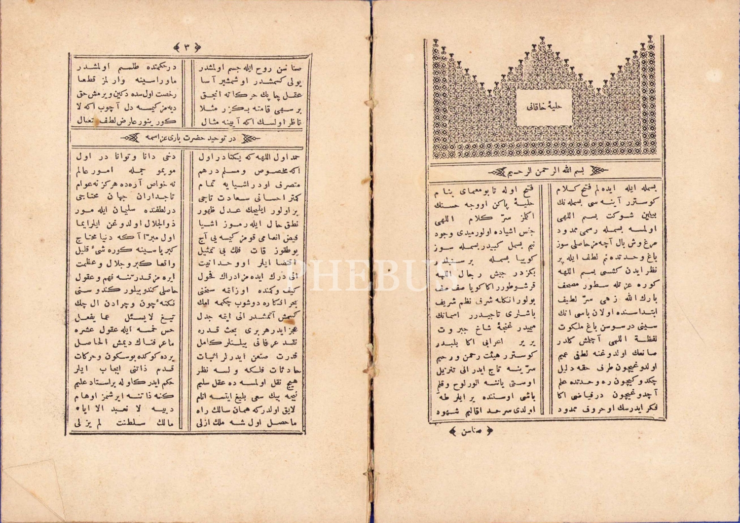 Osmanlı devlet armalı cildinde Hilye-i Hakani, Mehmed Emin Bey Matbaası, 1292, 43 sayfa, 11x15 cm