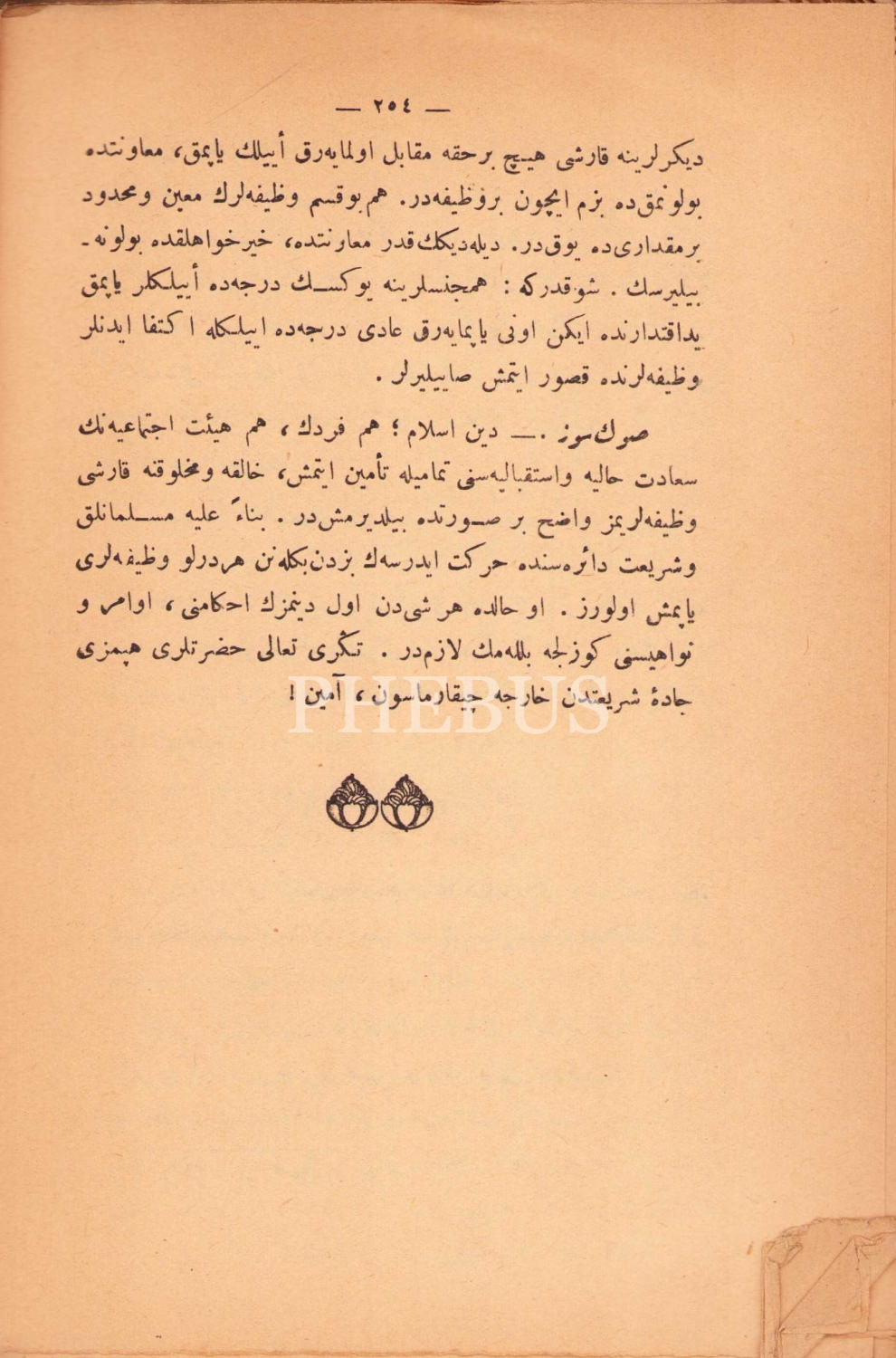 Osmanlıca Dini Dersler - Umum mekteplerde ve medreselerde tedris olunmak üzere tertip ve tahrir olunmuştur, Aksekili Ahmed Hamdi, birinci kitap ikinci kısım, Evkaf-ı İslamiye Matbaası, İstanbul