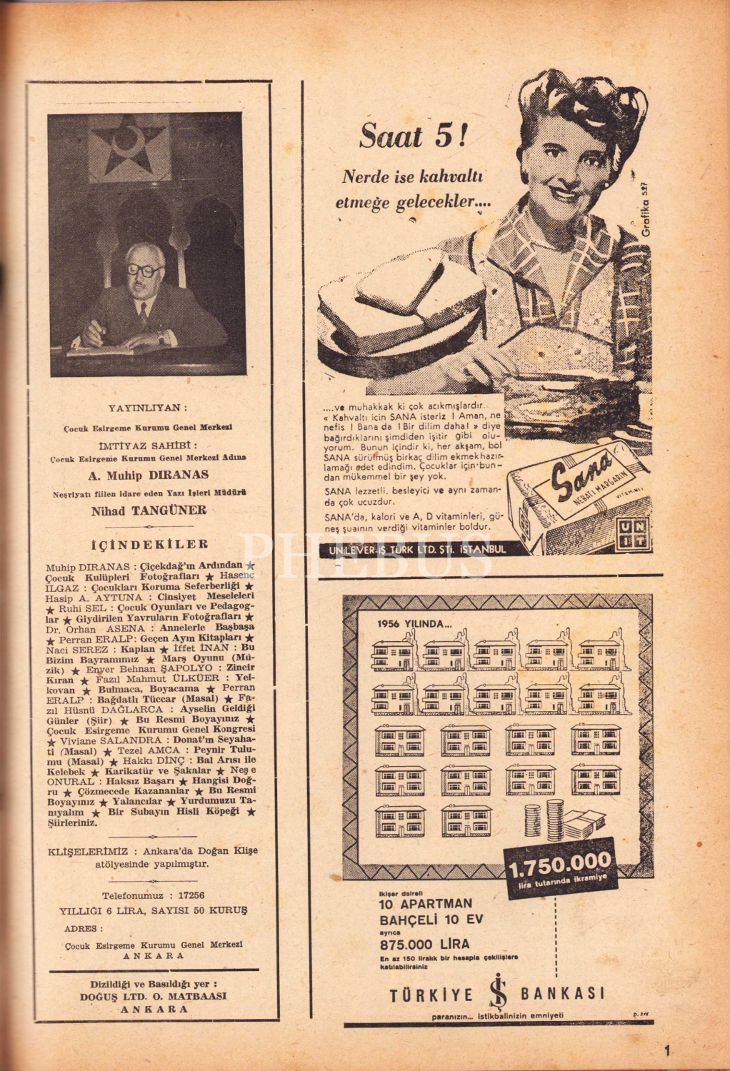 Çocuk ve Yuva Dergisi, Cumhuriyet Matbaası, Ankara, 1956 - 1957, sahibi A. Muhip Dıranas toplam 19 sayı mevcut, resimli, 24x32 cm