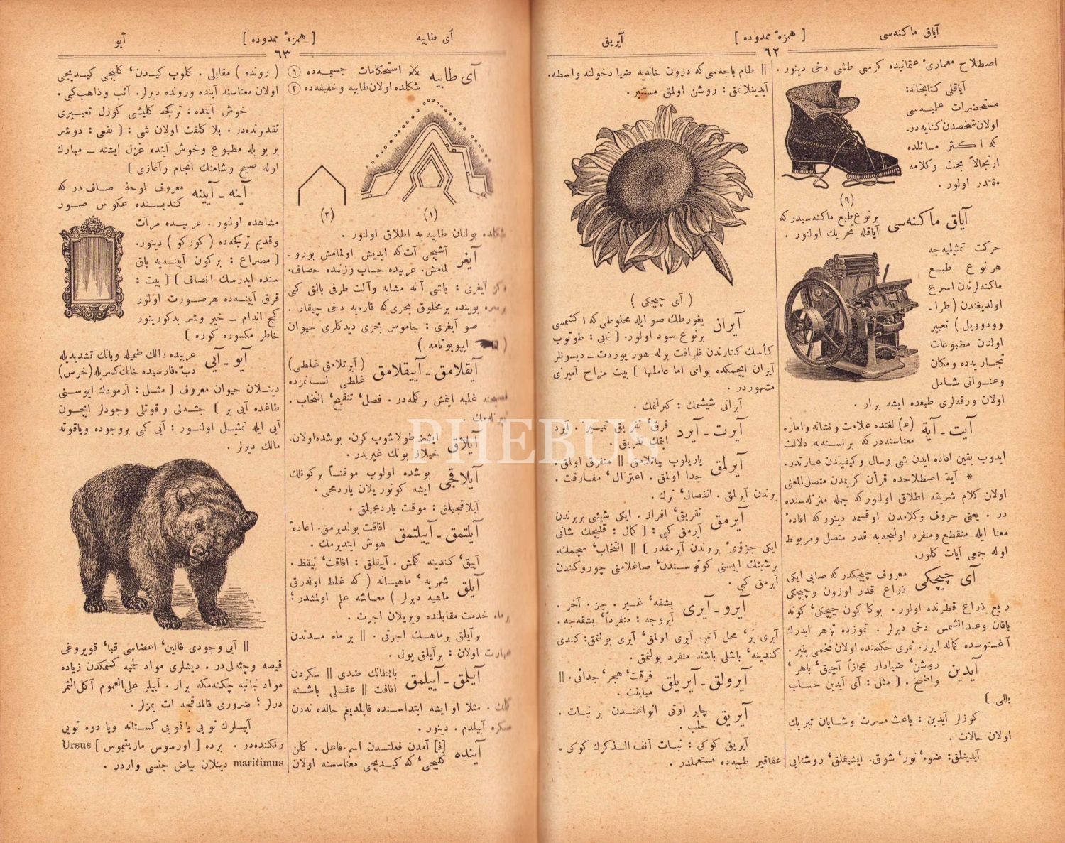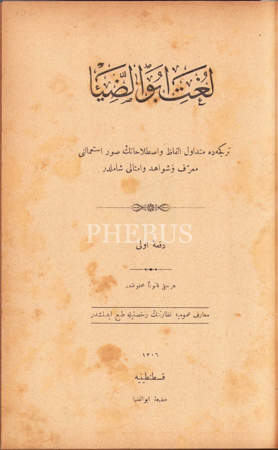 Osmanlıca Lugat-ı Ebuzziya, Maarif-i Umumiye Nezaretinin ruhsatıyla tab edilmiştir, Ebuzziya Matbaası, Konstantiniyye, 1306, 600 sayfa, 16x23 cm