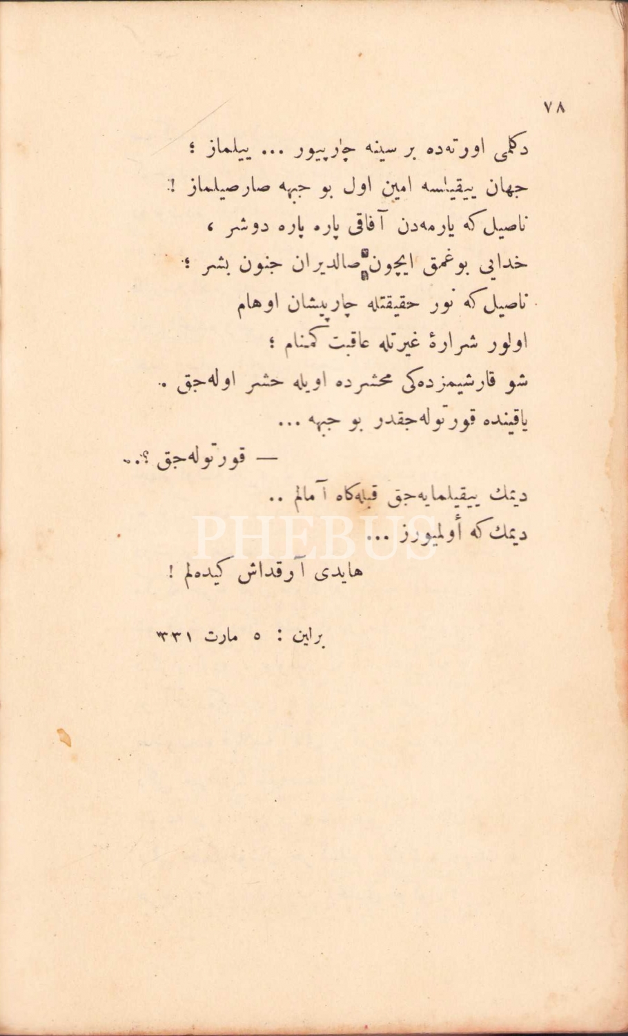Osmanlıca Safahat - beşinci kitap hatıralar, Mehmed Akif, Necm-i İstikbal Matbaası, kapak yok, 87 sayfa, 12x18 cm