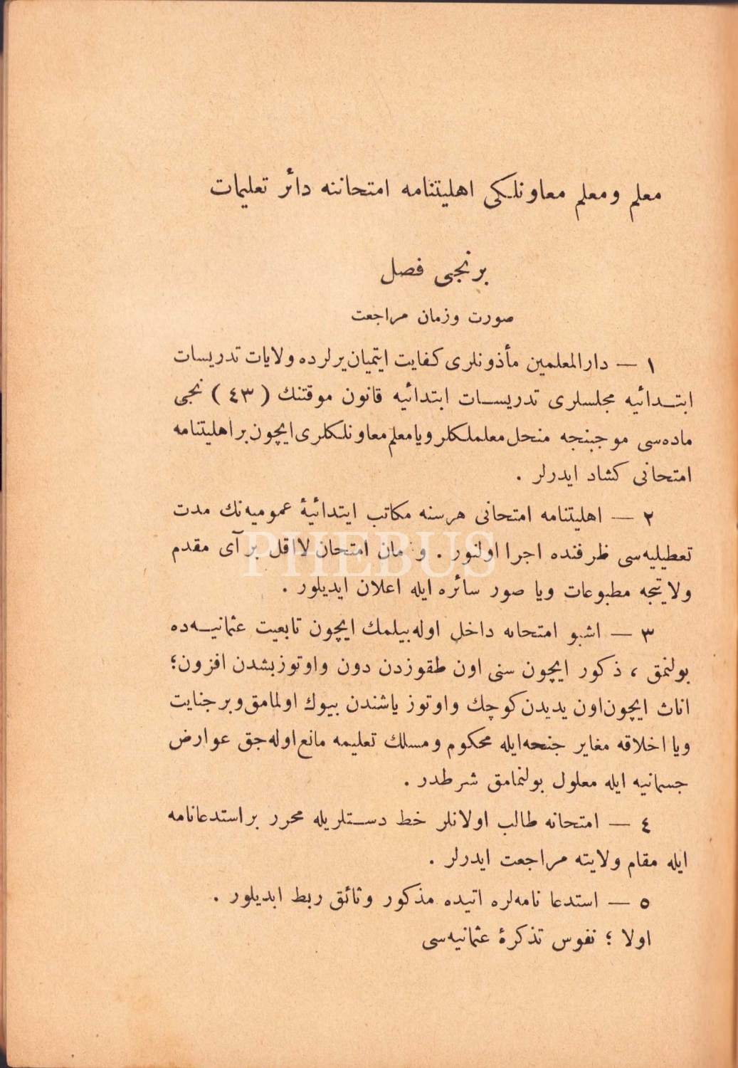 Osmanlıca Muallime ve Muallim Muavinliği Ehliyetname İmtihanına Dair Talimat, Matbaa-i Amire, İstanbul, 1329, 10 sayfa, 13x19 cm