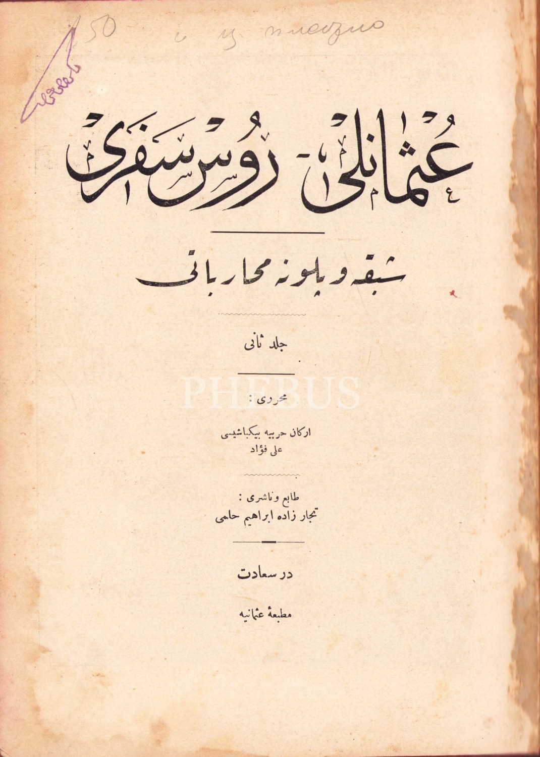 Osmanlıca Osmanlı - Rus Seferi, 2. cilt, Ali Fuad, Matbaa-i Osmani, Dersaadet, levhalı, resimli, 300 sayfa, 16x24 cm, ÖZEGE; 14435