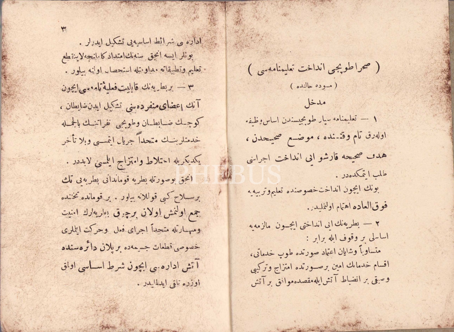 Osmanlıca Sahra Topçu Endaht Talimnamesi, Matbaa-i Askeriye, İstanbul, 1325, 88 sayfa, 10x15 cm