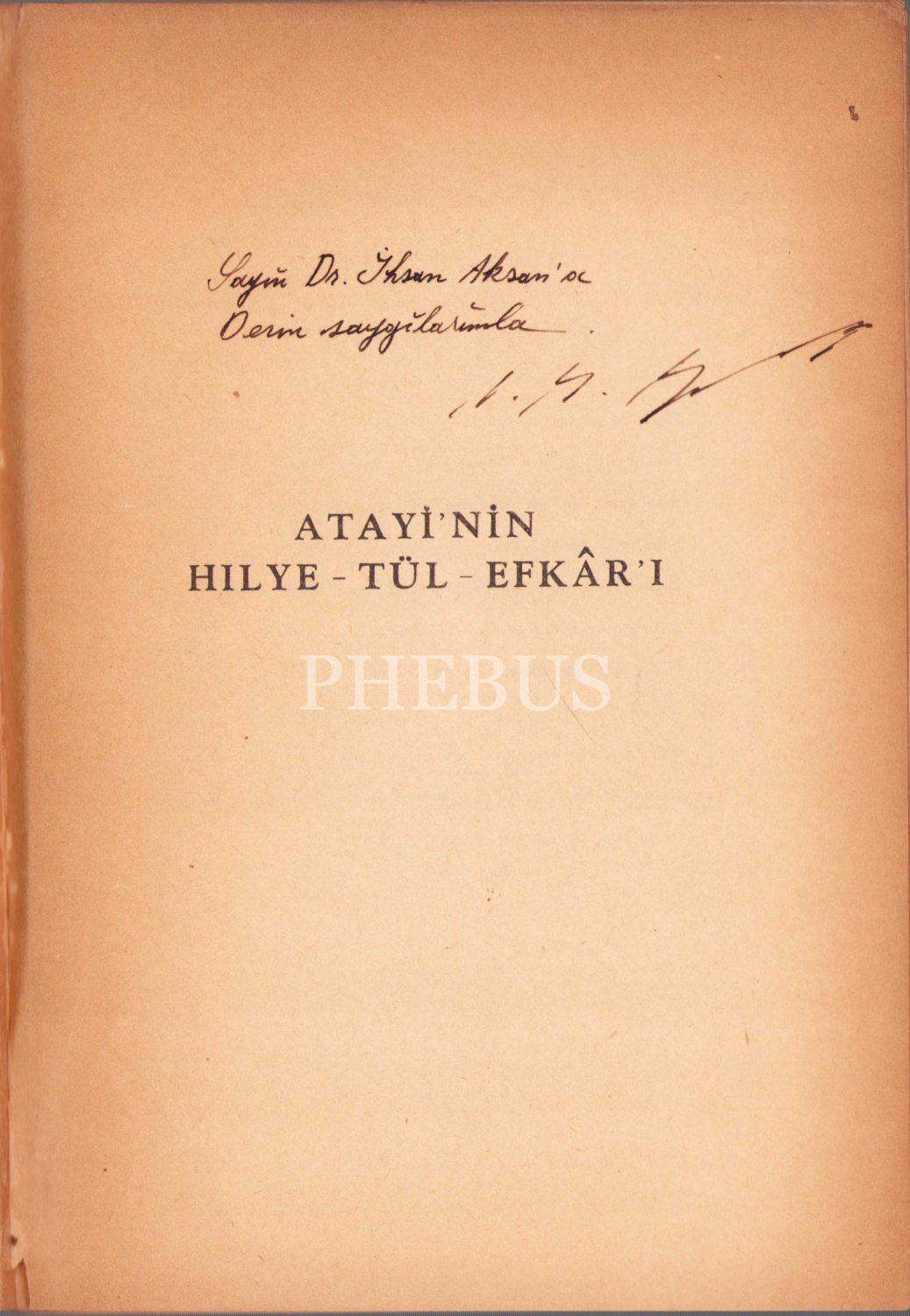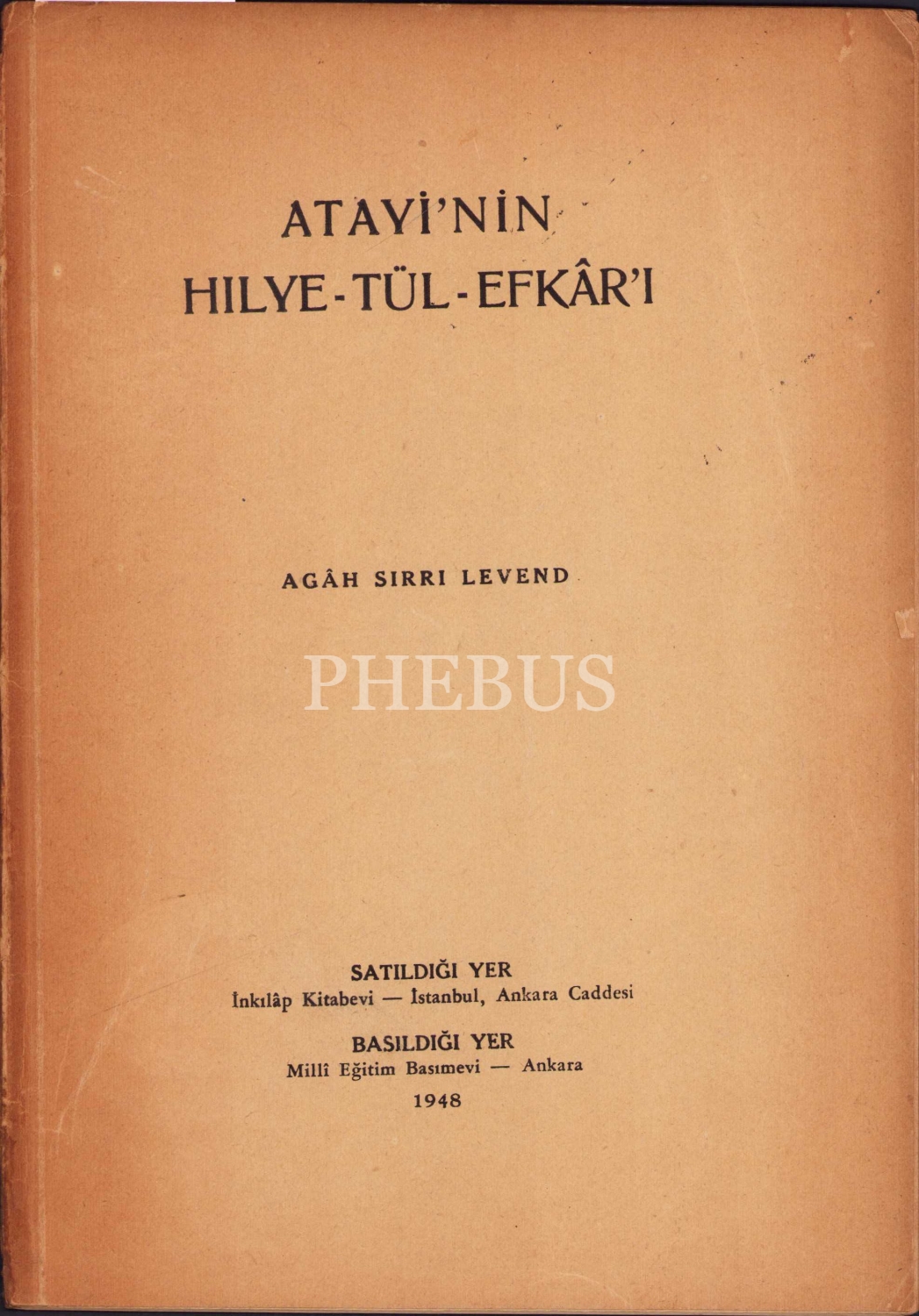Atayi'nin Hılye-tül - Efkar'ı, Agah Sırrı Levend, Milli Eğitim Basımevi, Ankara, 1948, 39 sayfa, 16x24 cm