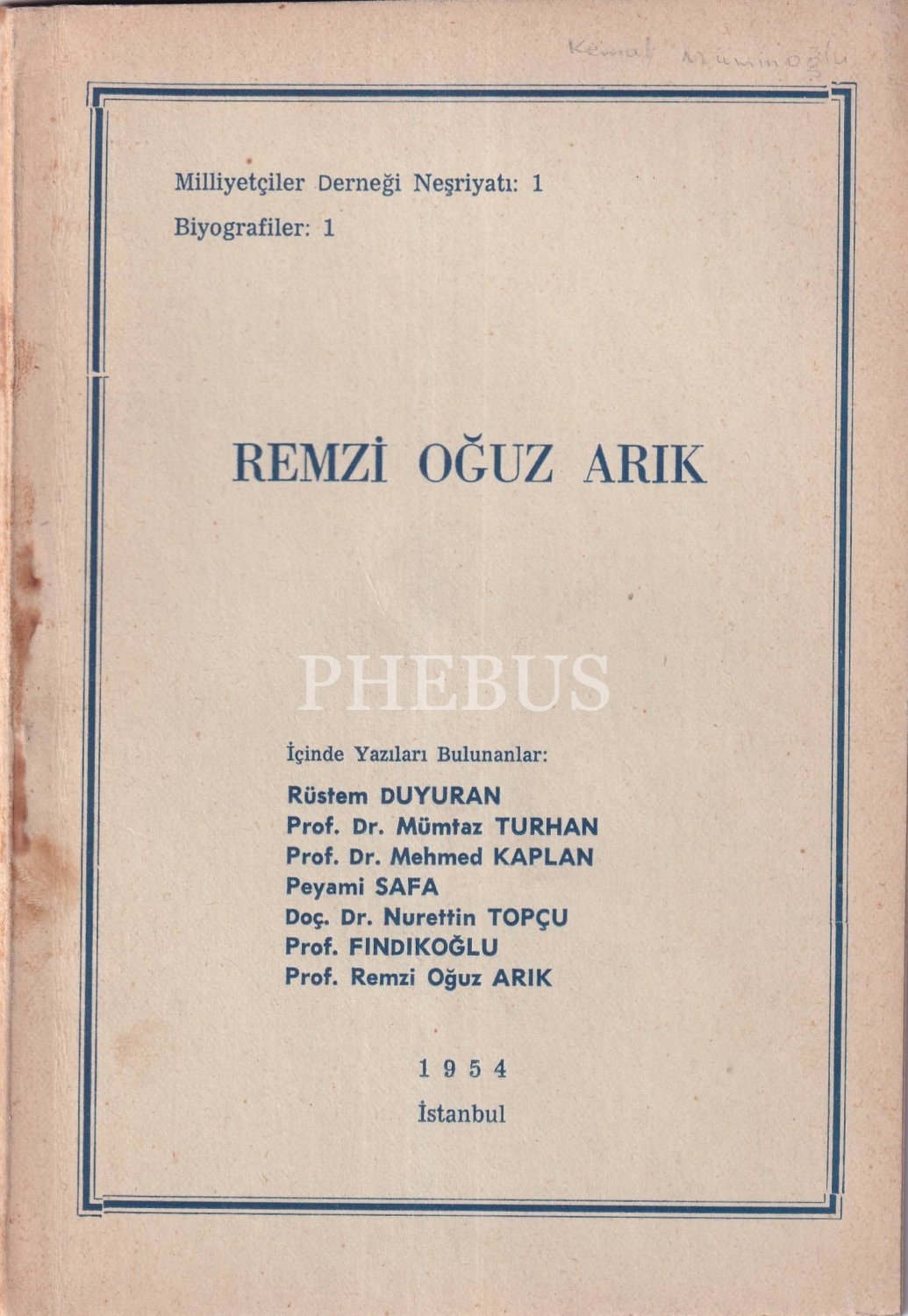 Remzi Oğuz Arık, Milliyetçiler Derneği Neşriyatı, 1954, İstanbul, 54 sayfa, 13x19 cm