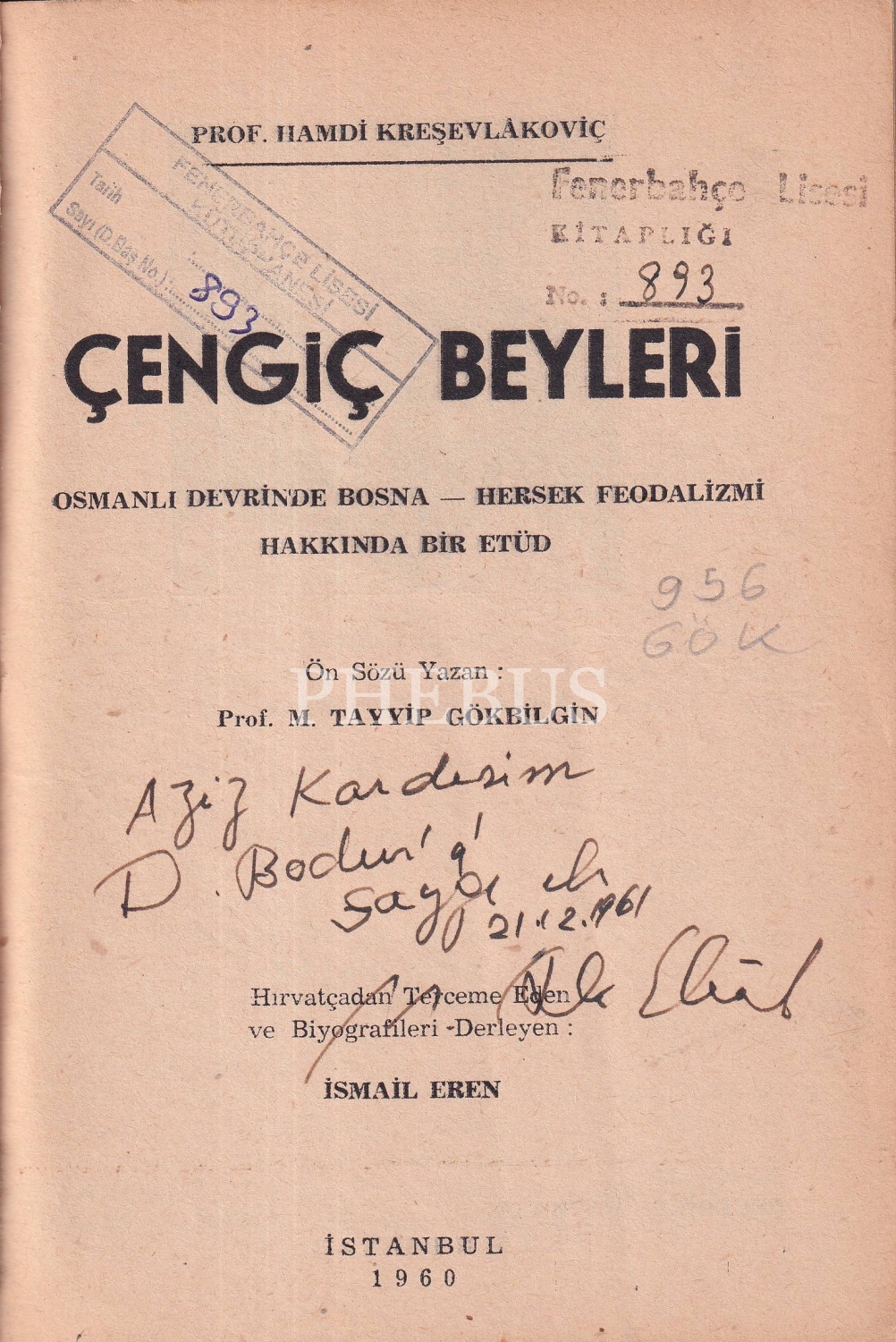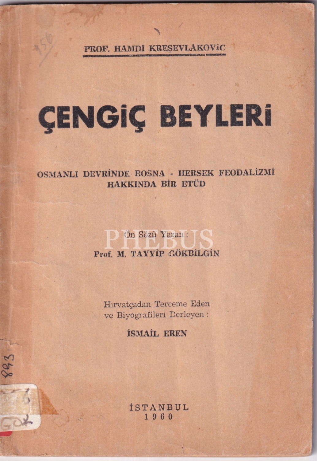 Çengiç Beyleri Osmanlı Devrinde Bosna Hersek Feodalizmi Hakkında Bir Etüd, Prof. Hamdi Kresevljakovic, Hırvatça'dan Tercüme: İsmail Eren, 1960, İstanbul, 64 sayfa, 14x19,5 cm