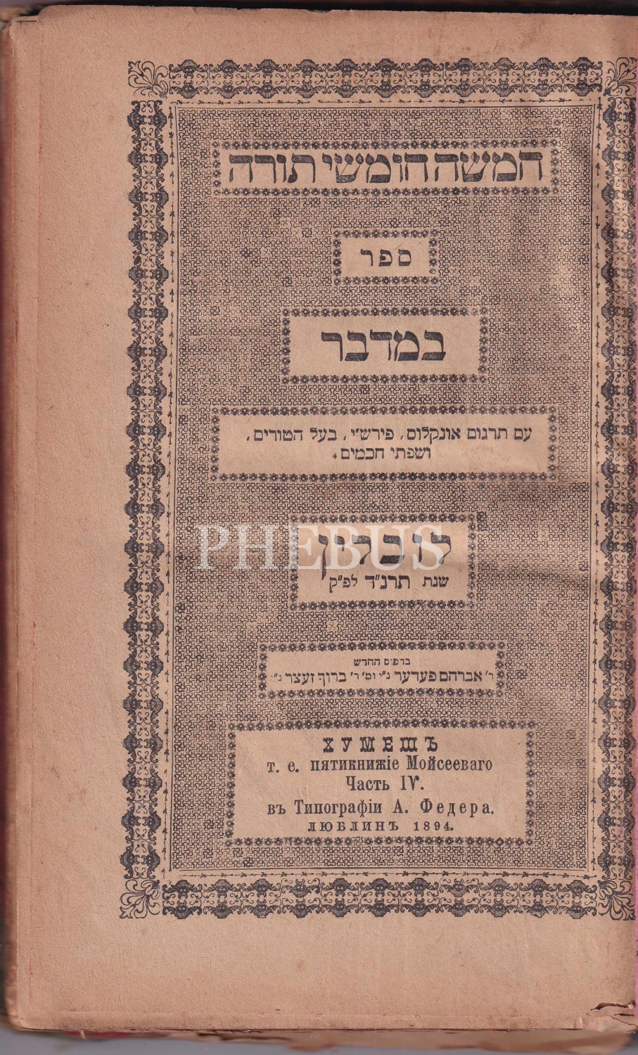 İbranice kitap, 1894 tarihli, son sayfası haliyle, 14,5x23 cm