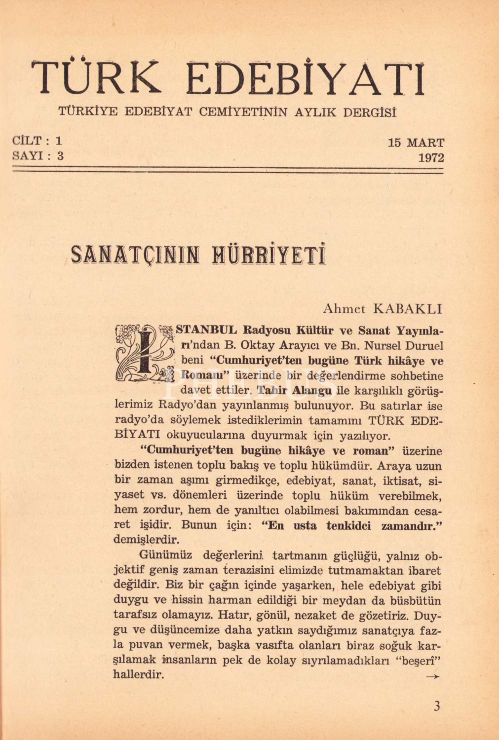 Yazar kadrosunda, Ahmet Kabaklı, Arif Nihat Asya, Münevver Ayaşlı, Cemil Meriç, İnci Engünün bulunmaktadır.