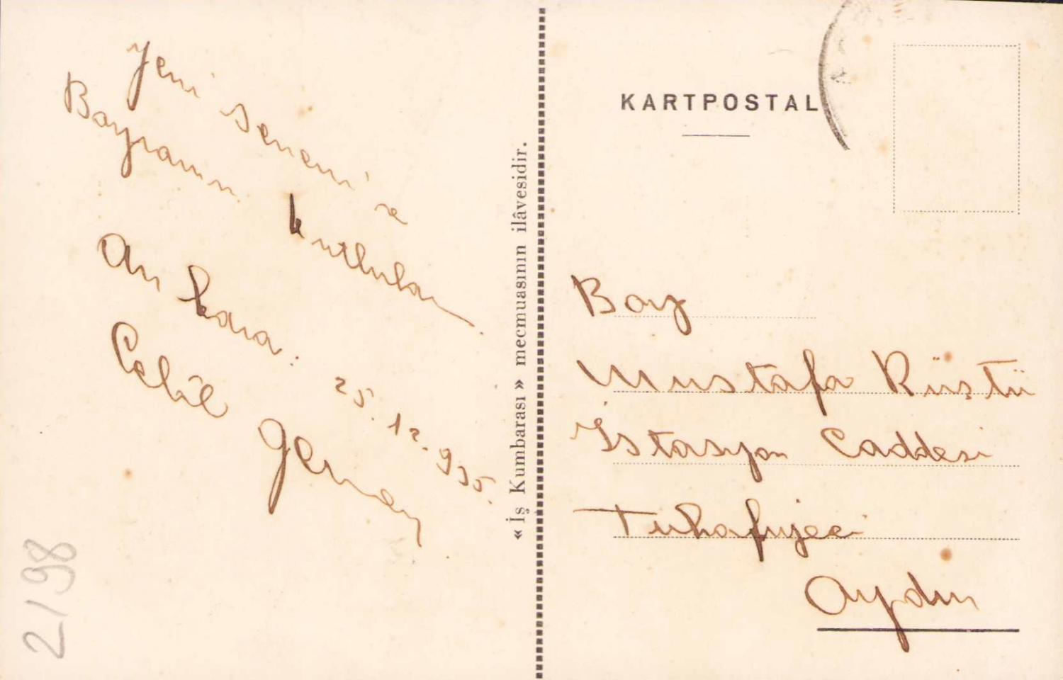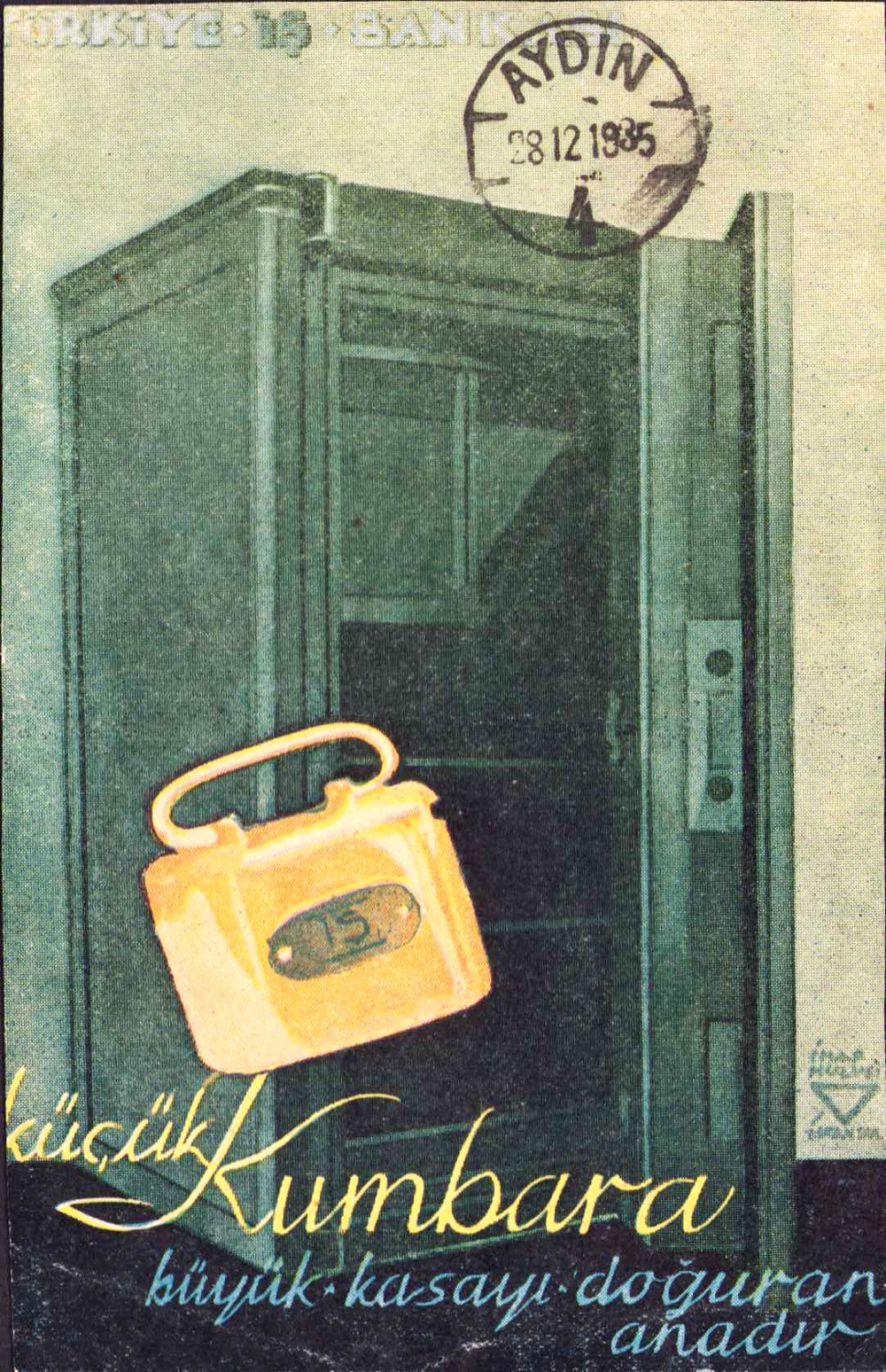 İş Bankası kumbara reklamlı kart, Aydın, 4 kenarından kesik
