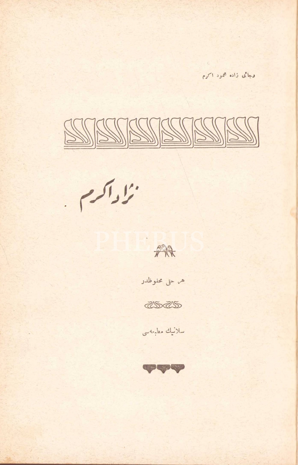 Nejad Ekrem, Recaizade Mahmud Ekrem, Selanik Matbaası, 1326, 160 sayfa, 16x23 cm, ÖZEGE; 15482