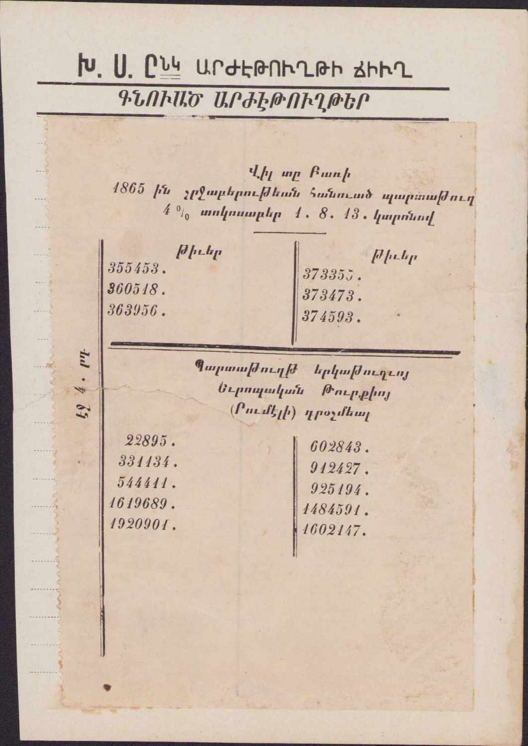1865 tarihli Ermenice döküman