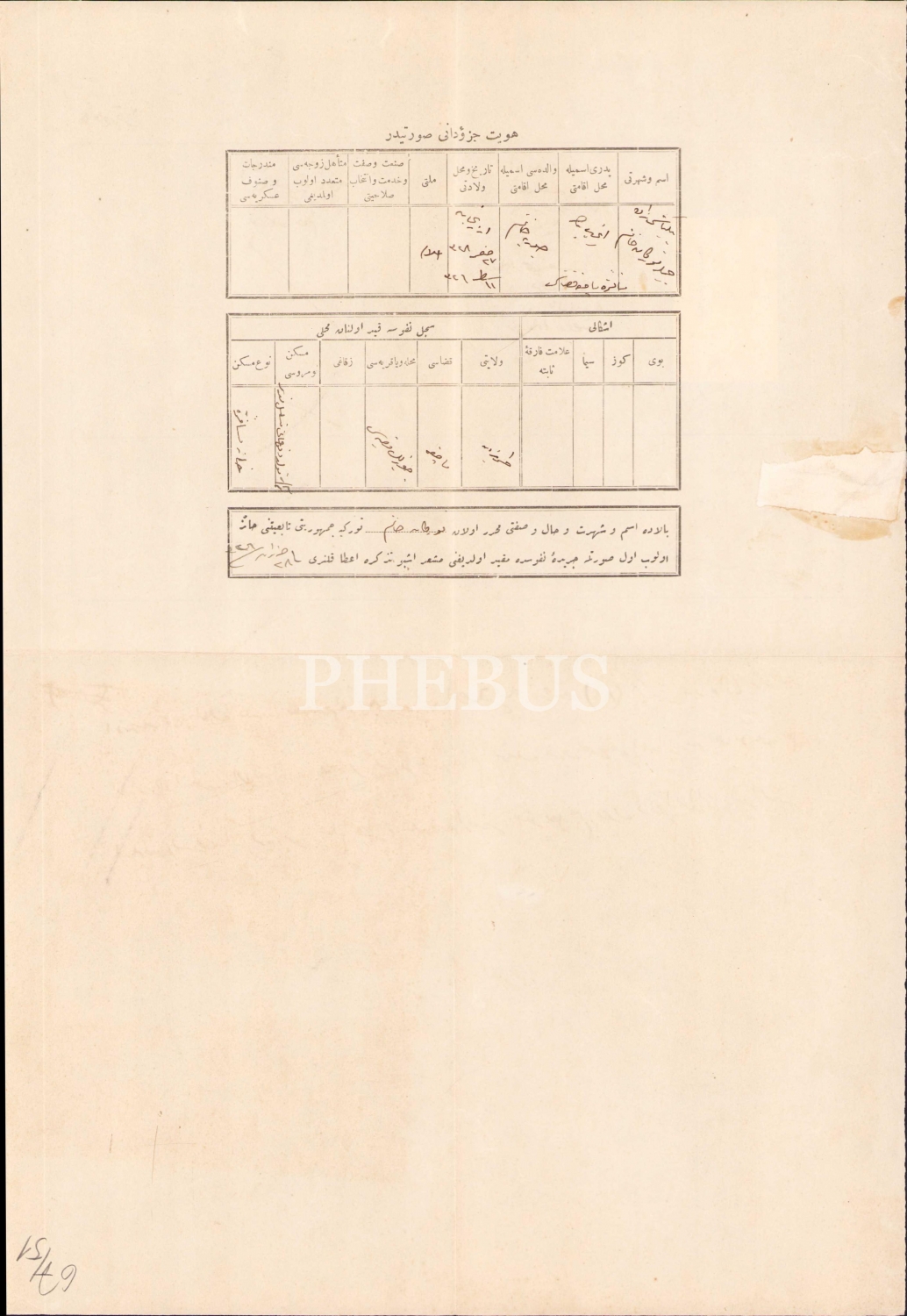 Osmanlıca Hüviyet Cüzdanı Sureti, 1926 tarihli, 28x41 cm