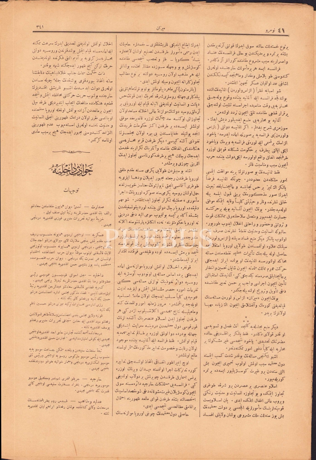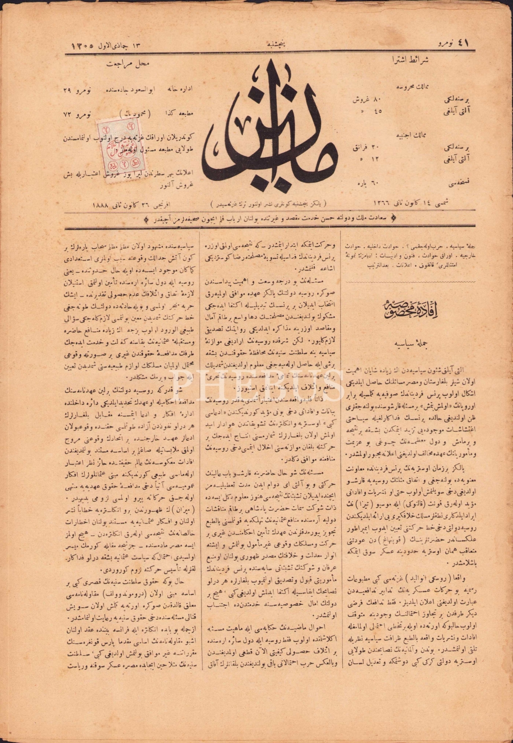 Osmanlıca Mizan Gazetesi, 26 Kanunusani 1888 tarihli, 12 sayfa, 41 Numara, 29x41 cm