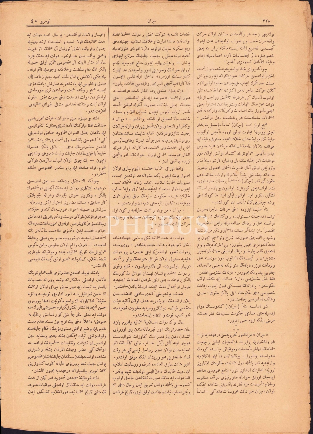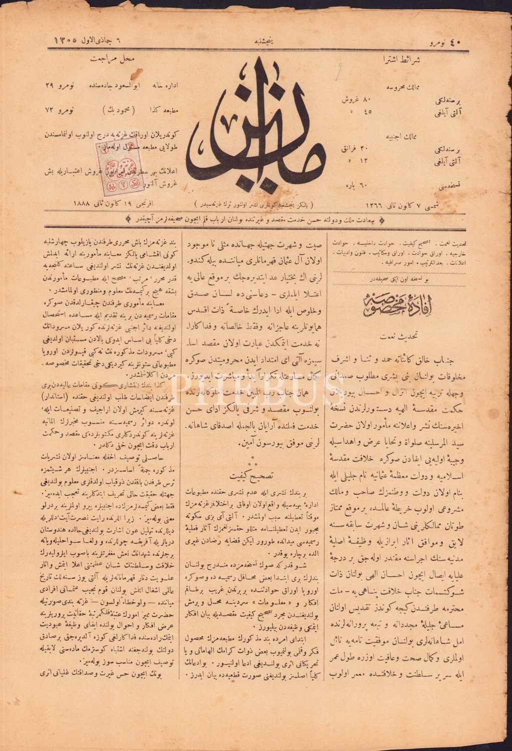 Osmanlıca Mizan Gazetesi, 19 Kanunusani 1888 tarihli, 12 sayfa, 40 Numara, 29x41 cm