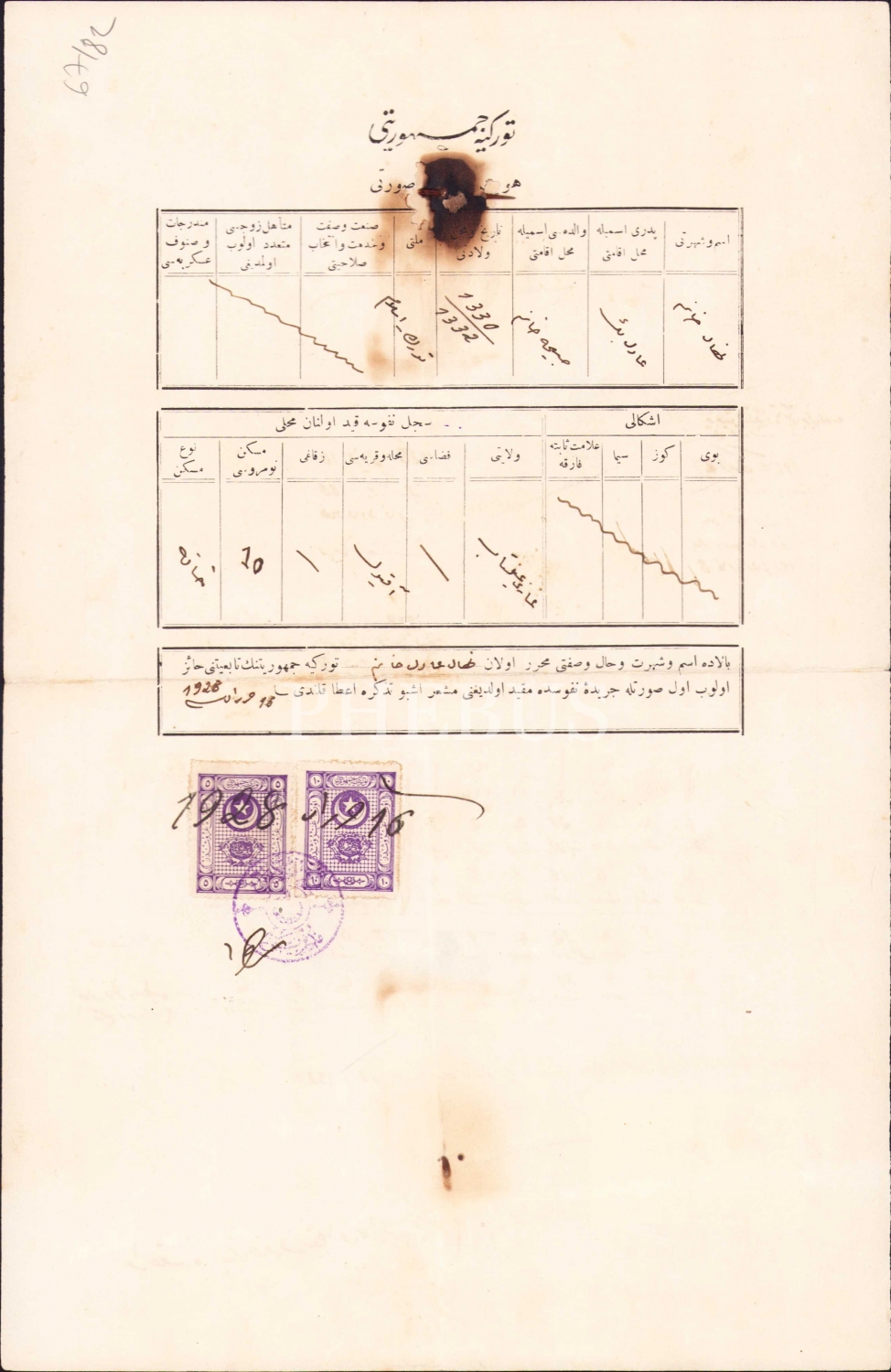 Türkiye Cumhuriye Kimlik Sureti, Osmanlıca, Nihal Hanım'a ait, 1928 tarihli, haliyle, 22x34 cm