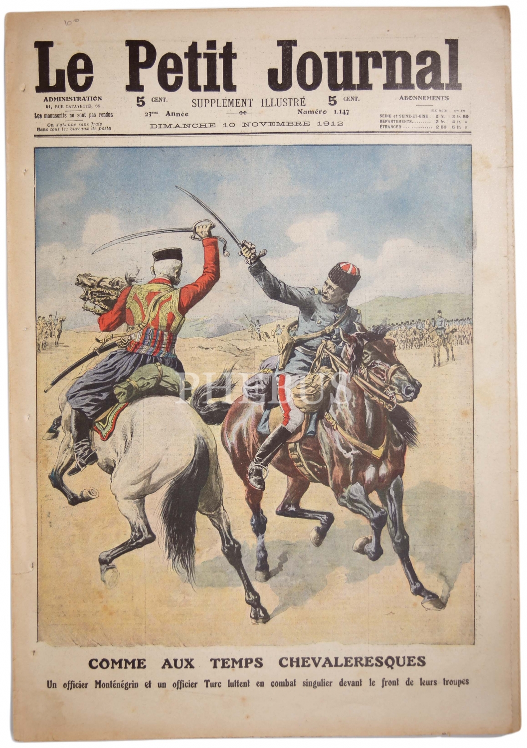 Le Petit Journal, 10 Kasım 1912 tarihli, 8 sayfa, Fransızca, 30x43 cm.