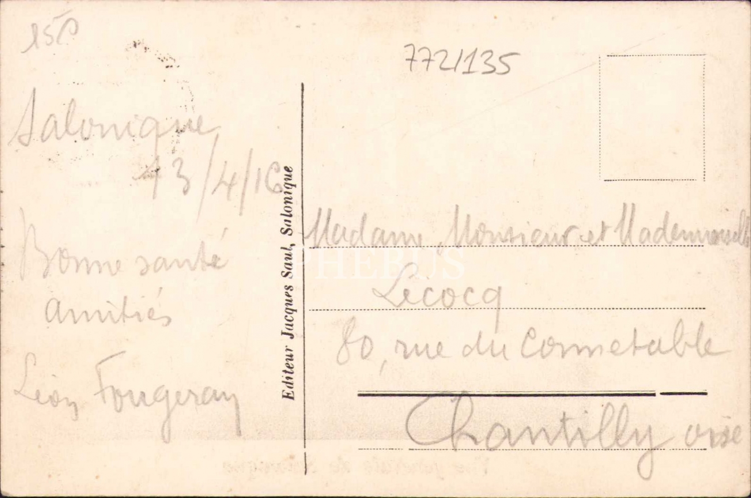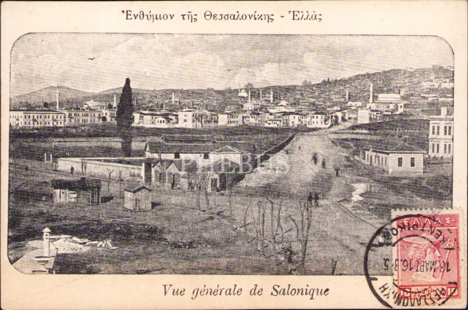Osmanlı dönemi Selanik genel görünüm, postadan geçmiş önden damgalı, editör Jacques Saul