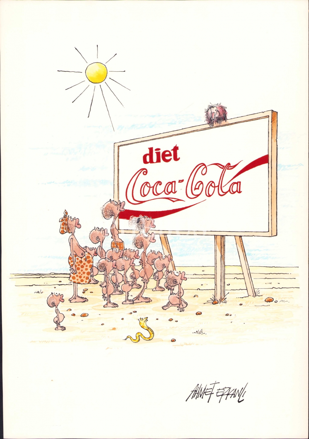 Ahmet Erkanlı ıslak imzalı karikatür, 24x34 cm