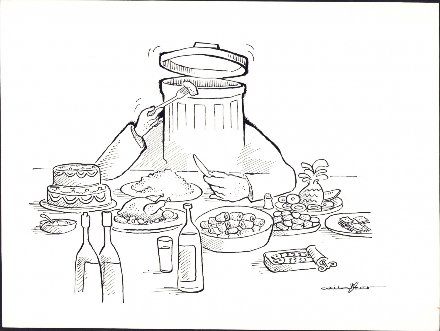 Atilla Özer ıslak imzalı karikatür, 32x23 cm