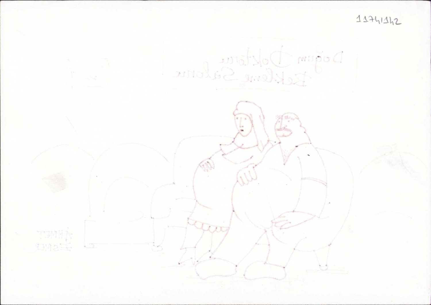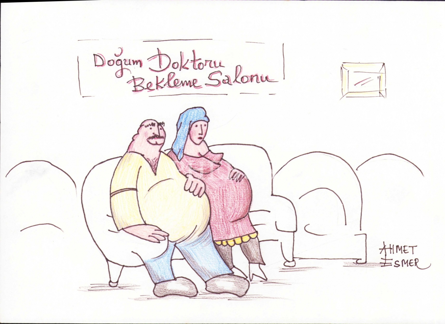 Ahmet Esmer ıslak imzalı karikatür, 29x20 cm