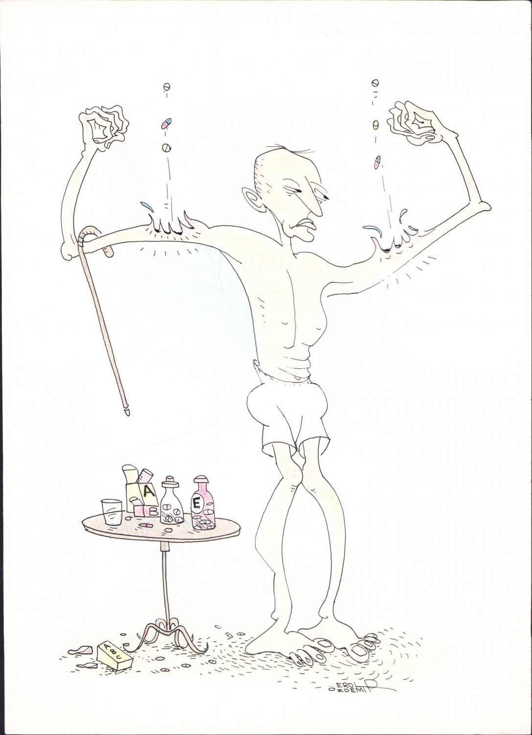 Erol Özdemir ıslak imzalı karikatür, 25x33 cm