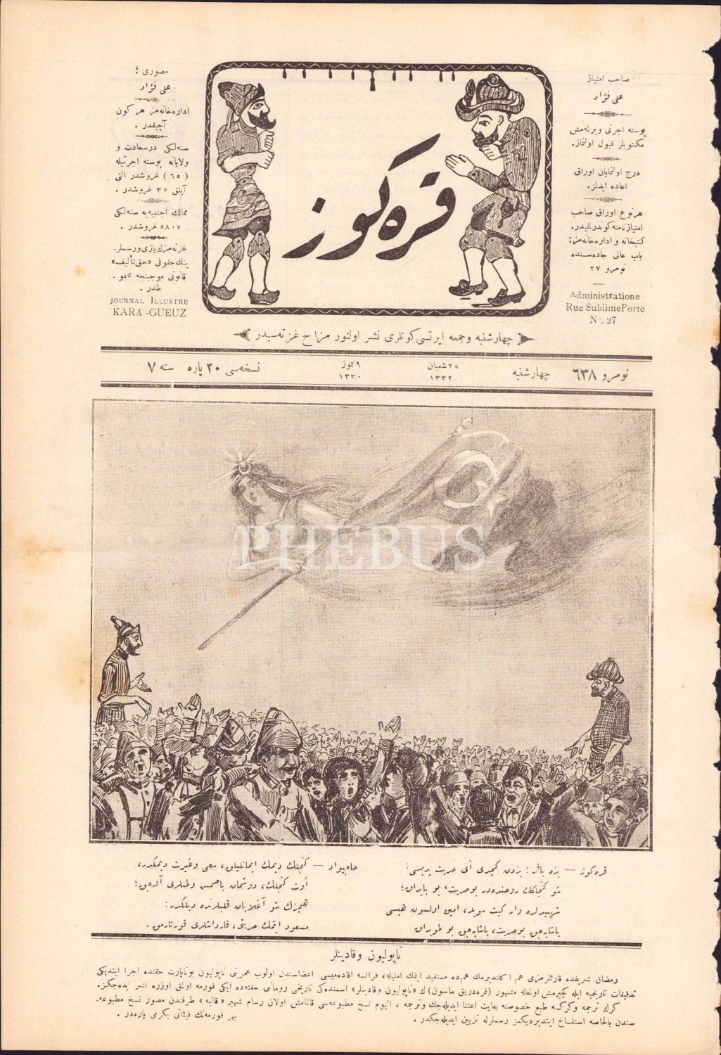 Osmanlı dönemi Karagöz mizah gazetesi, 1330, 4 sayfa, 28x40 cm