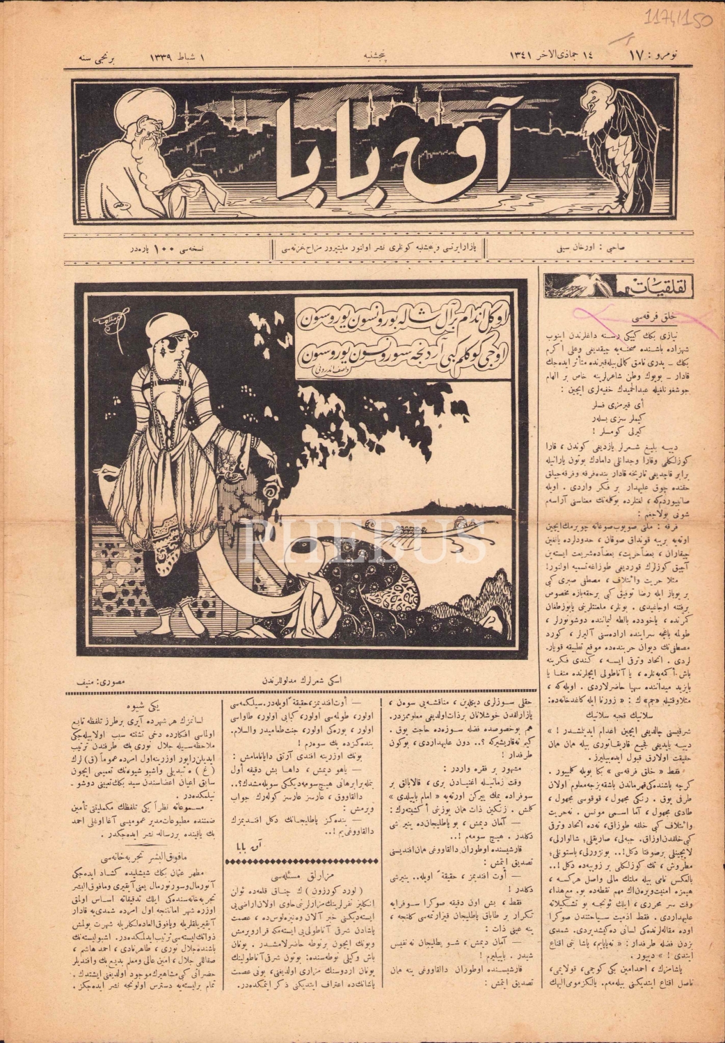 Osmanlı dönemi Akbaba mizah gazetesi, 1339, 4 sayfa, 28x40 cm