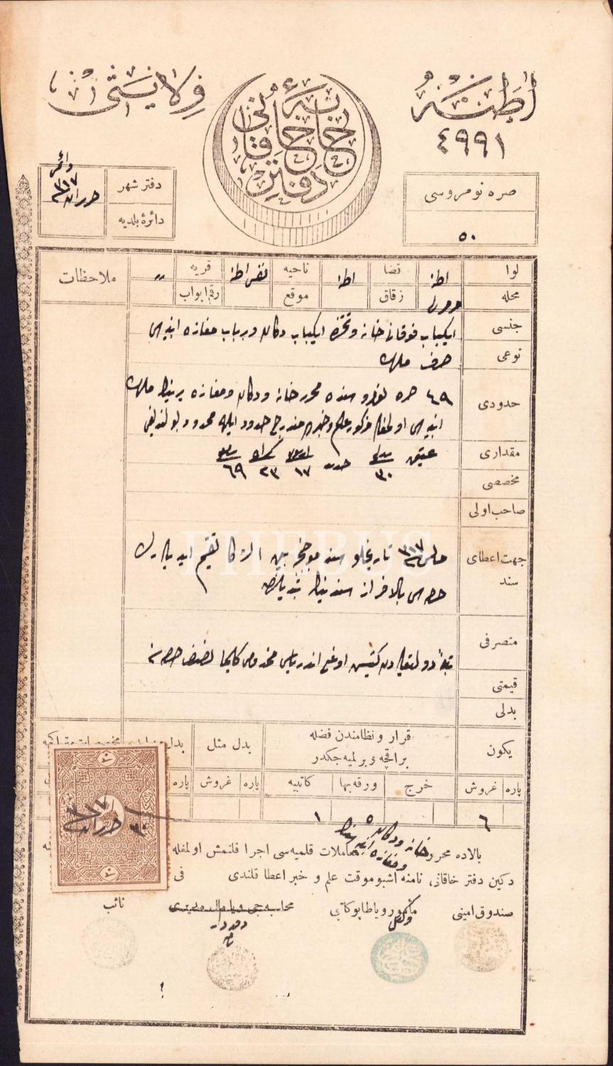 Osmanlı tapu, Adana, 1317, 15x27 cm