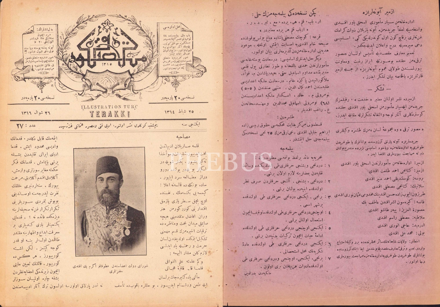 Osmanlıca Musavver Terakki gazetesi, Dersaadet, 1316, 8 sayfa, 20x28 cm