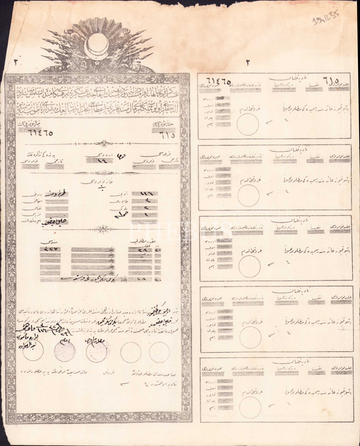 Osmanlı dönemi, askeriyedeki hizmetliye ait maaş senedi, 1329 tarihli, mühürlü, haliyle, 27x33cm