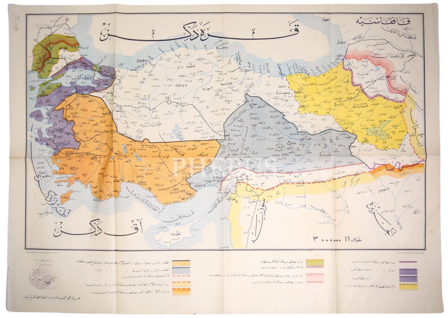 Osmanlıca Türkiye haritası, Ahmed İhsan Matbaası, 1928, 50x48 cm