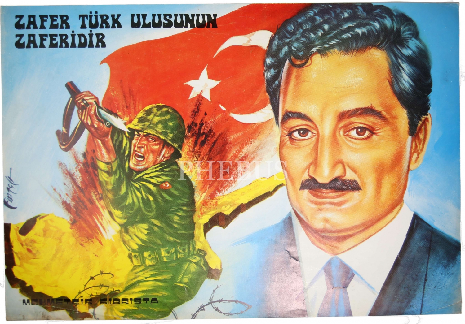 Aslan Şükür çizim, Zafer Türk Ulusunu Zaferidir, Bülent Ecevit, afiş, 48x33 cm