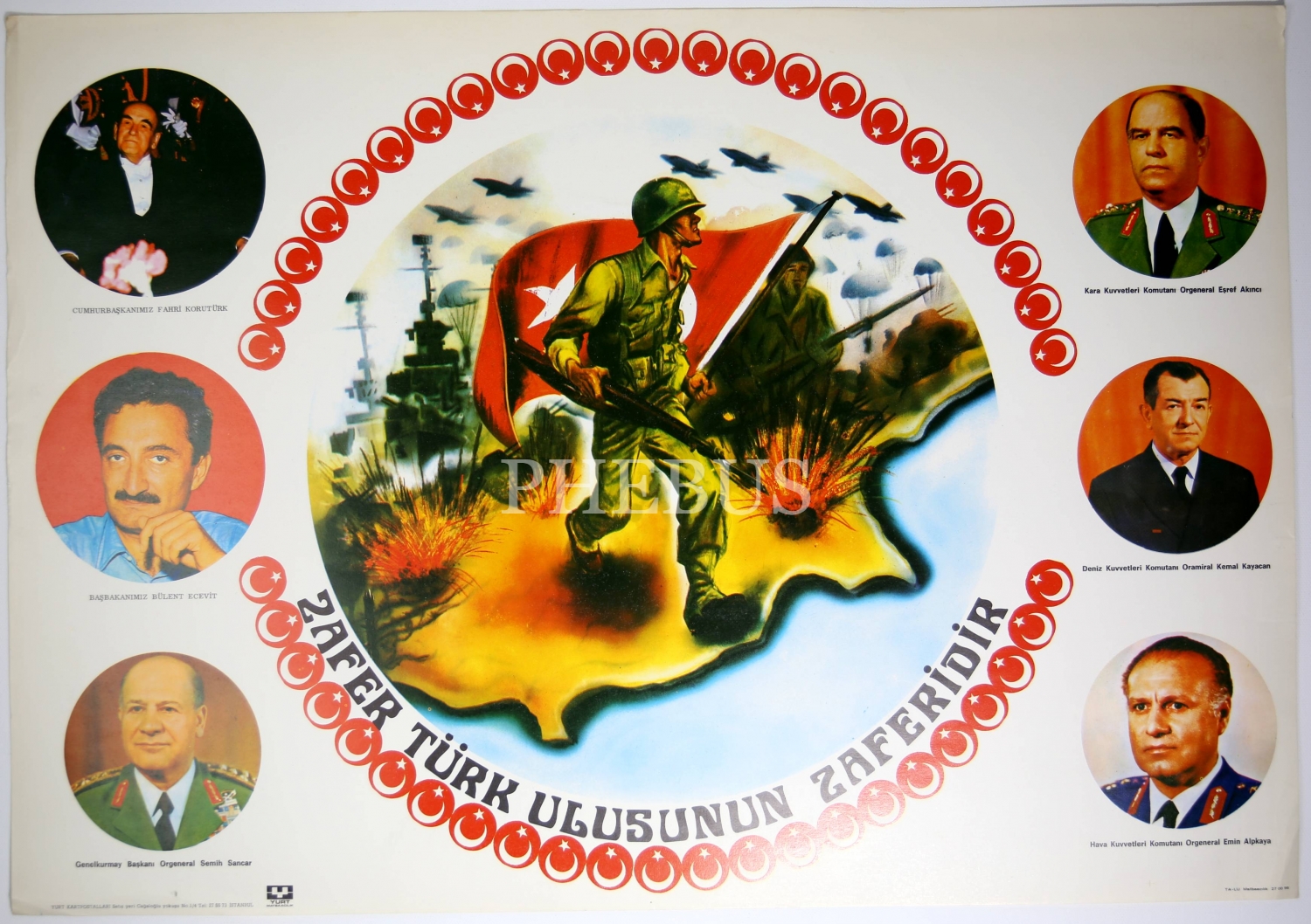 Aslan Şükür çizim, Zafer Türk Ulusunun Zaferidir: Fahri Korutürk, Bülent Ecevit, Semih Sancar, Eşref Akıncı, Kemal Kayacan, Emin Alpkaya, afiş, 48x32 cm