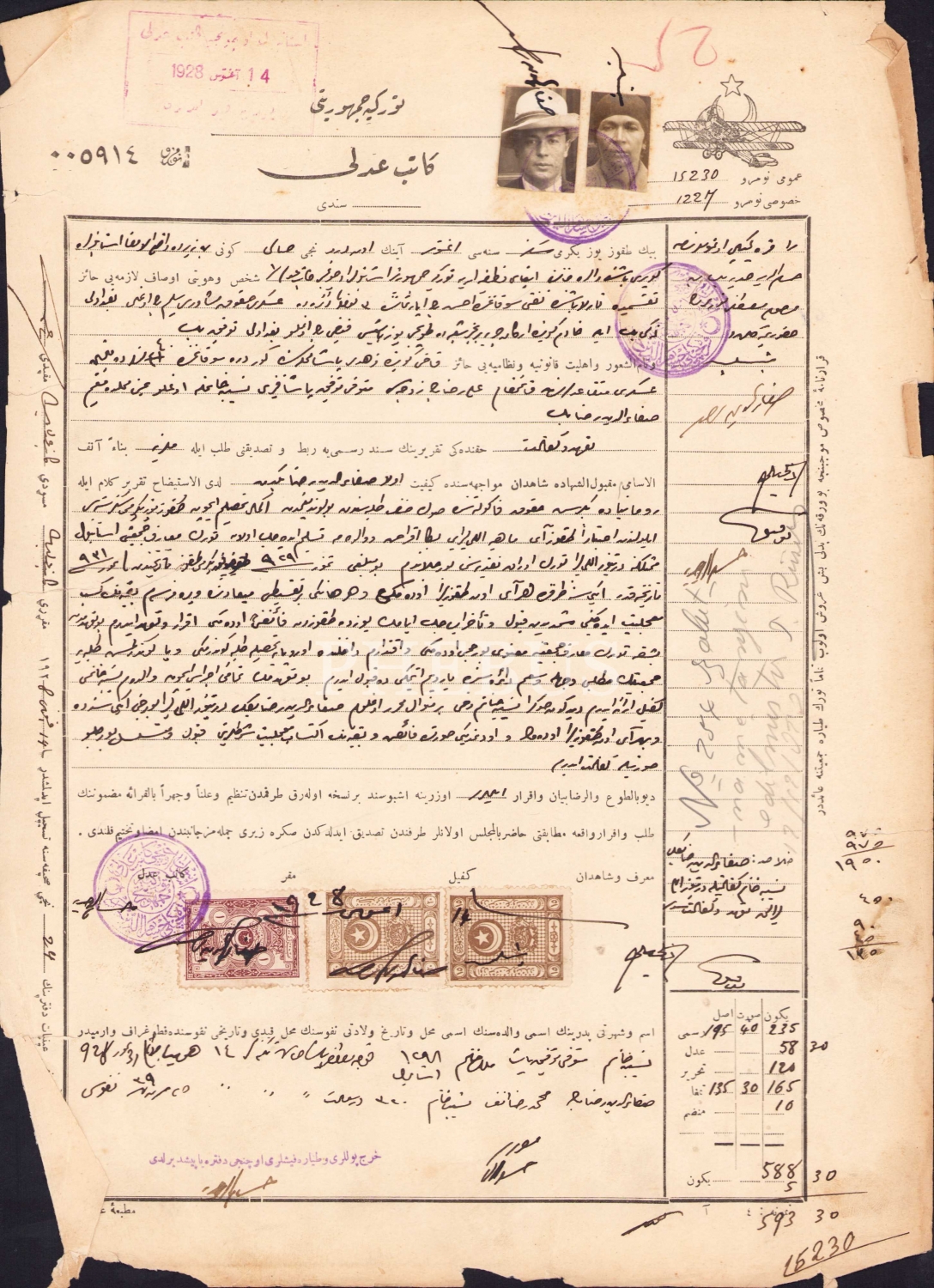 Osmanlıca adli katip tutanağı, 1928, bir kenarı yrtık, 28x38 cm