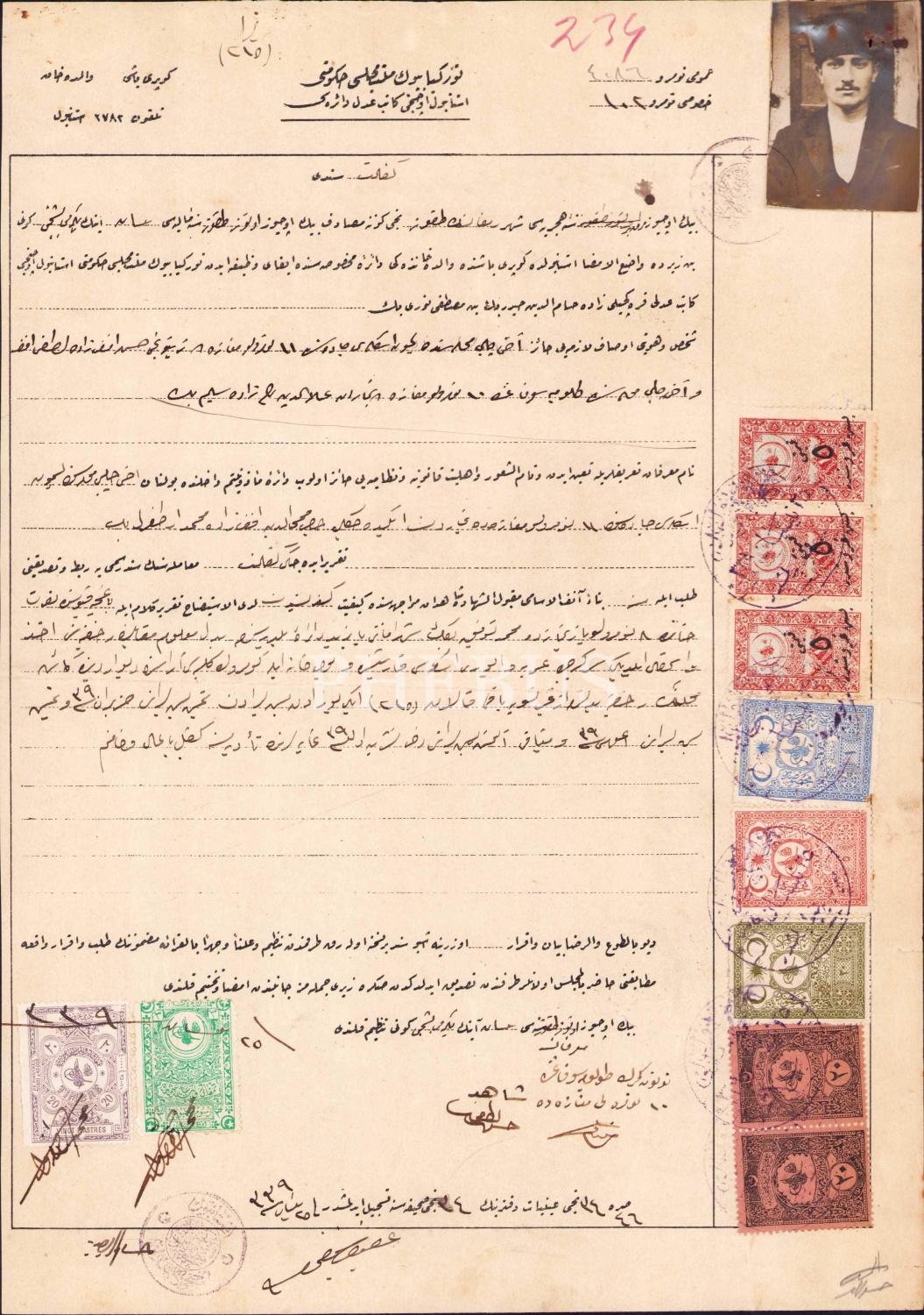 Osmanlıca kefalet senedi, 1339, pullu damgalı, 22x33 cm