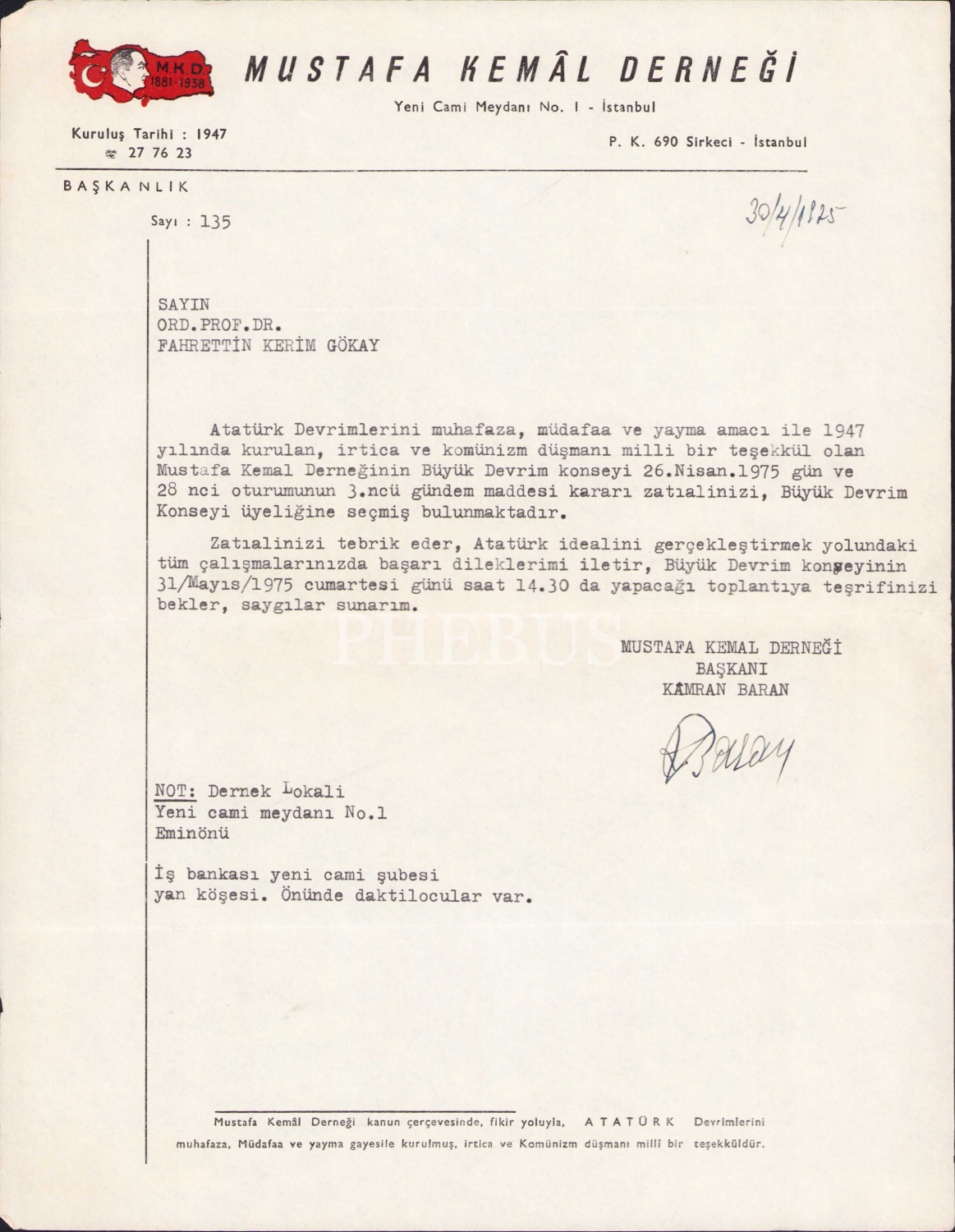 Mustafa Kemal Derneği antetli doküman, 22x28 cm