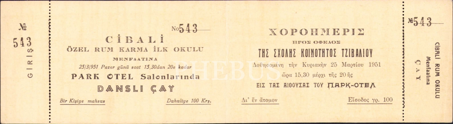 Rumca, Cibali Özel Rum Karma İlkokulu Çay Davetiyesi, 7x24 cm.