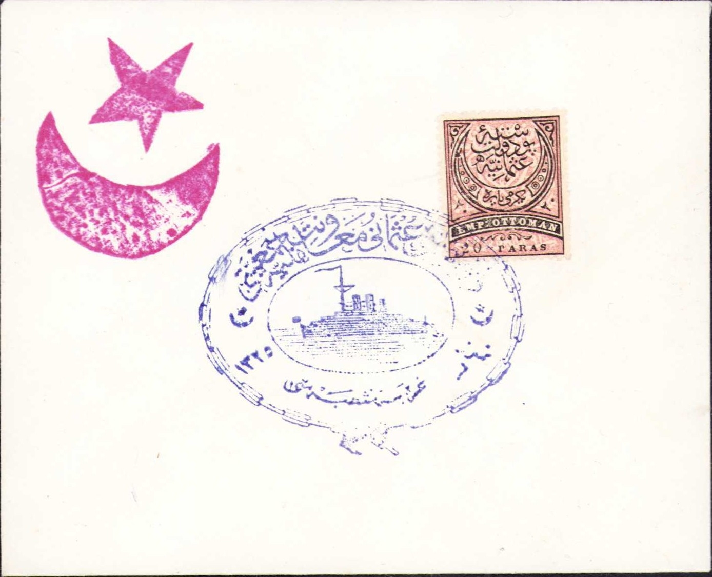 Osmanlıca Donanma-yı Osmani Muavenet-i Milliye - ay yıldız damgalı, hatıra amaçlı yeni yapım zarf, 11x9 cm