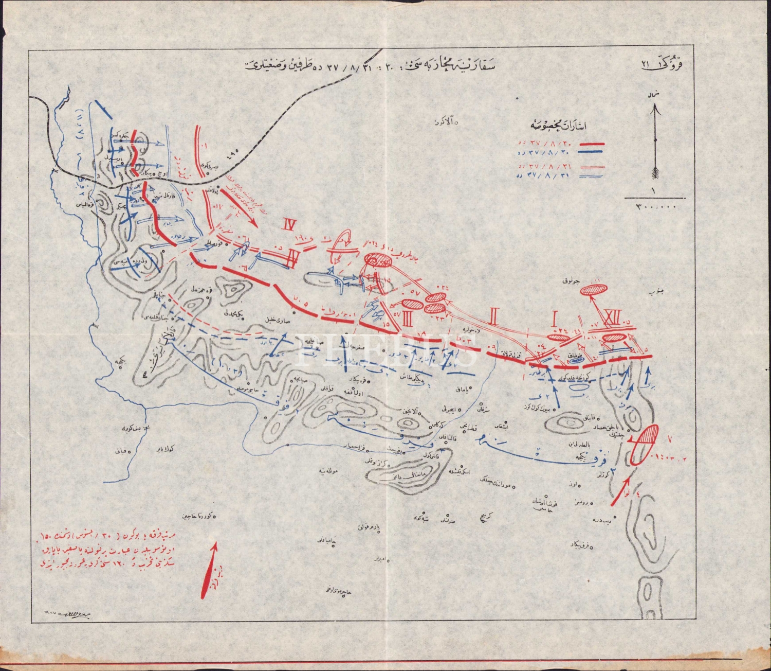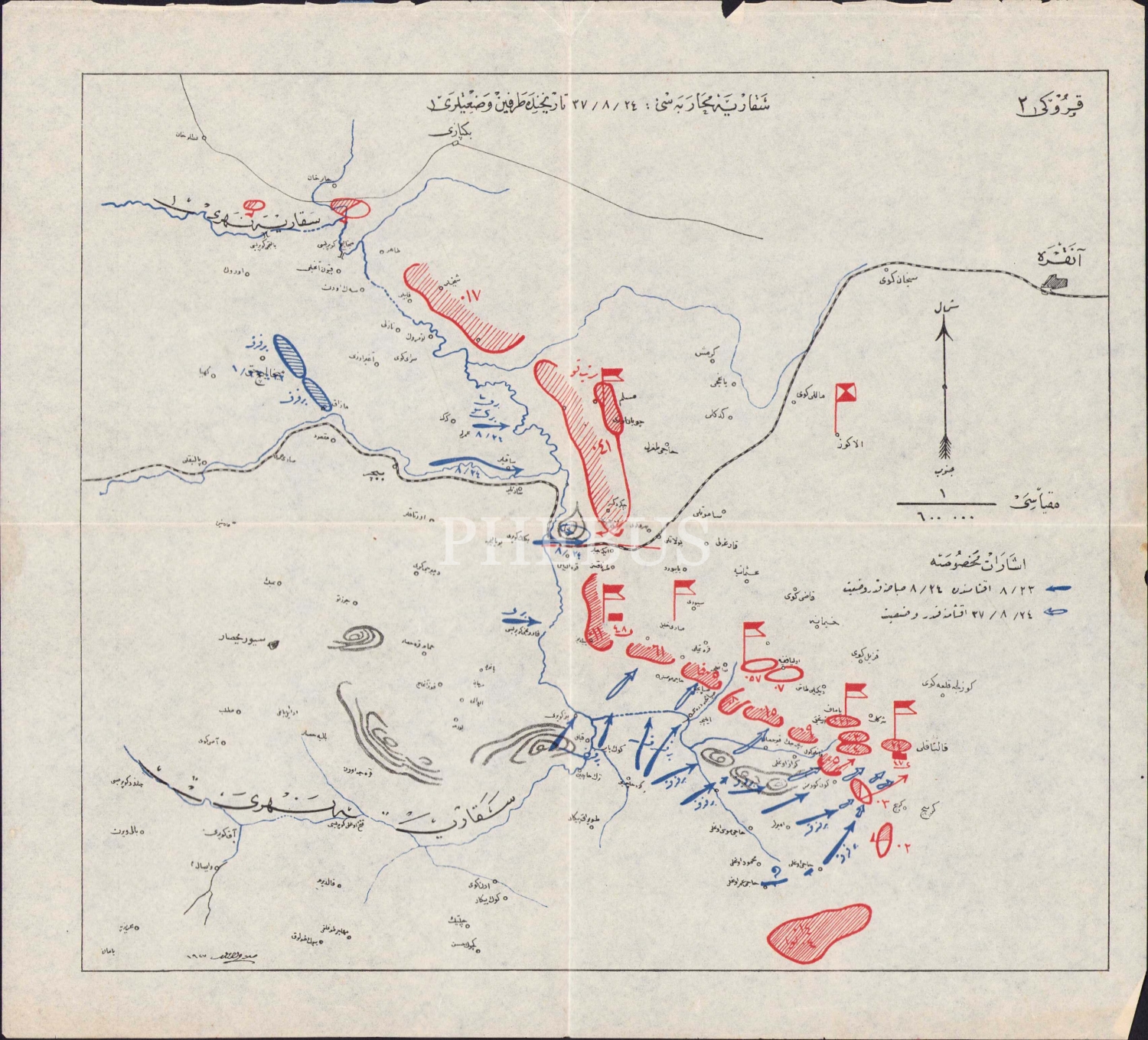 Sakarya Muharebesine ait 3 adet Osmanlıca kroki, 1337, 26x27 cm