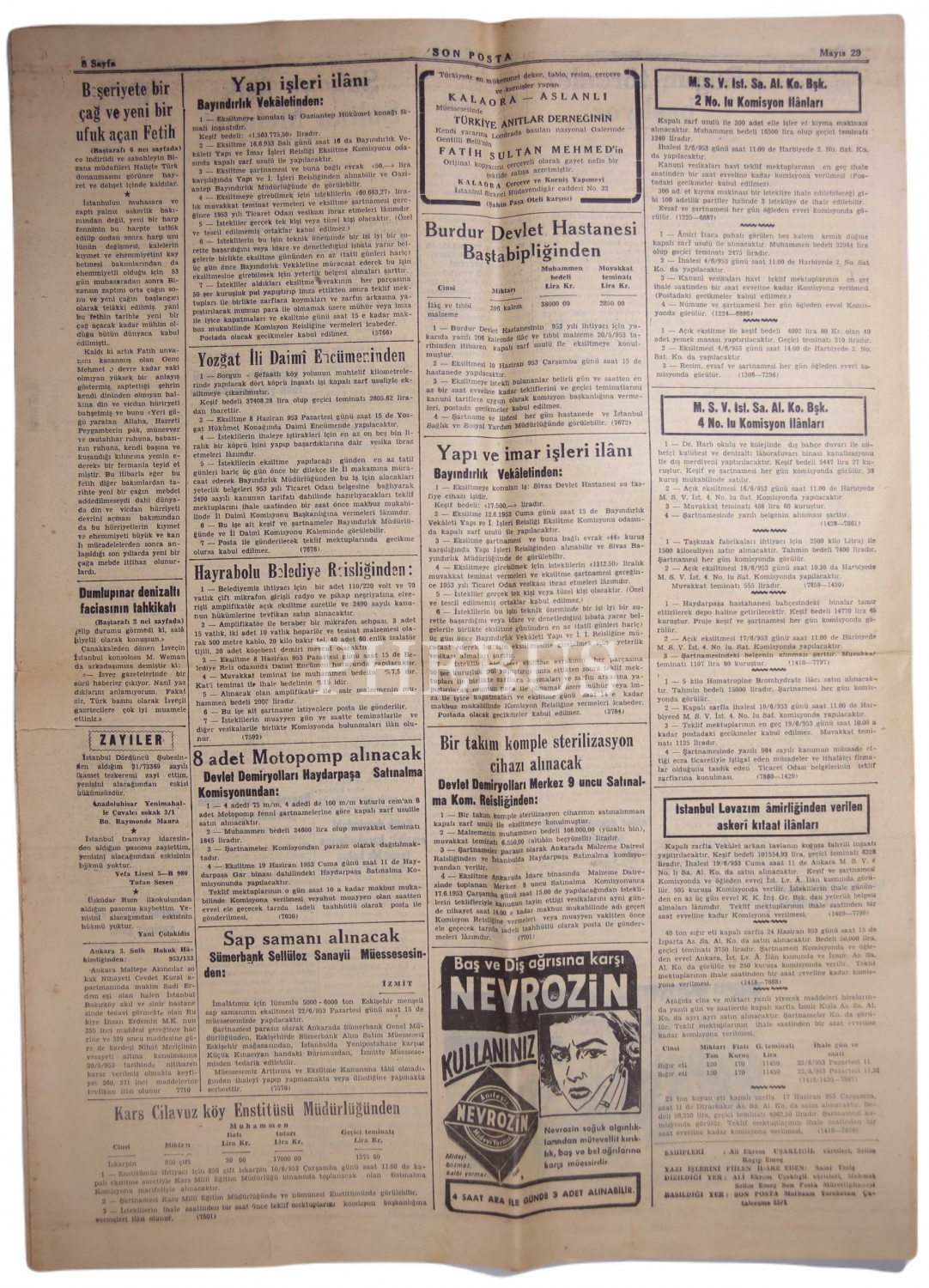Son Posta, İstanbulun 500 üncü Fetih Yılı, 29 Mayıs 1953, 8 sayfa, 40x60 cm